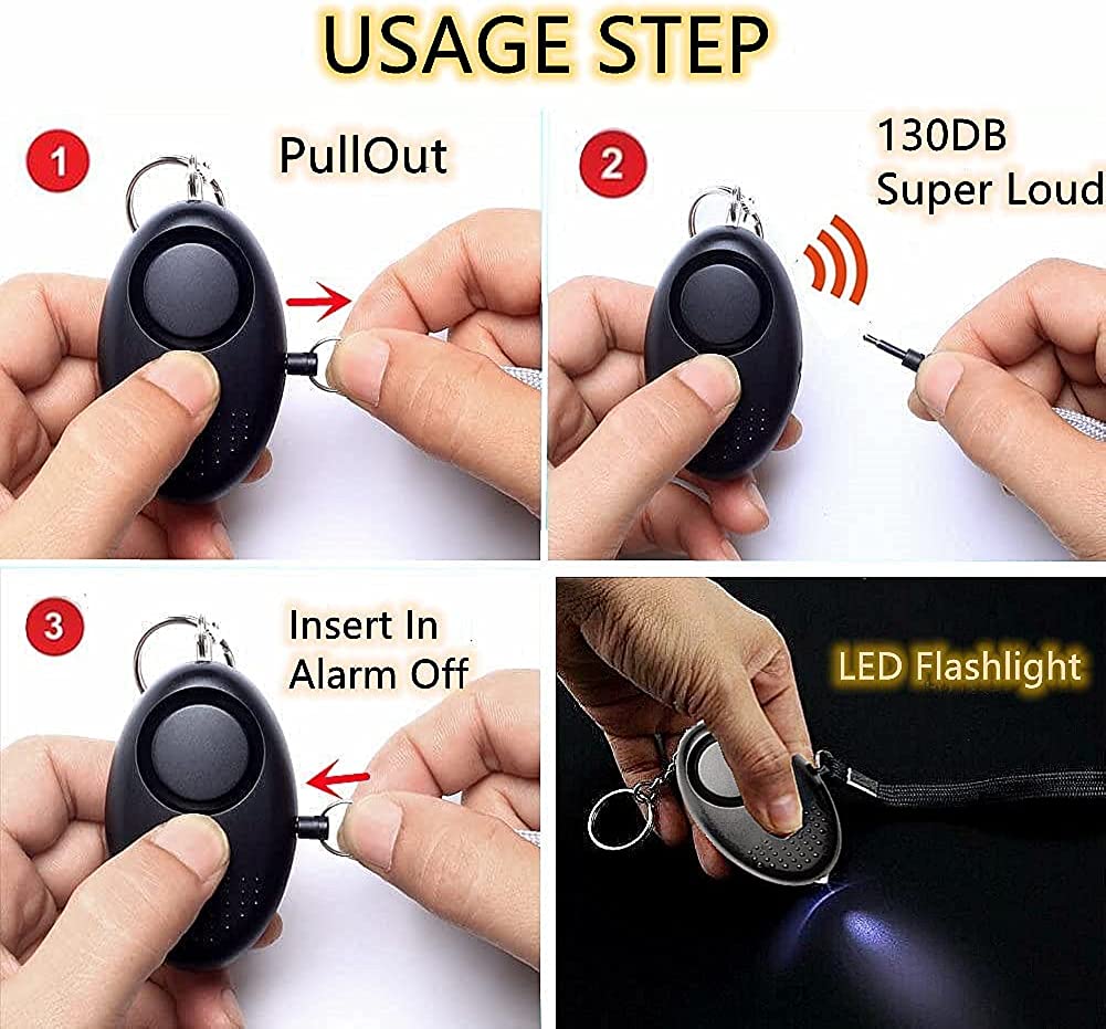 • ?❗【Safety Alarm】: The emergency alarm could last 50 minutes continuous 130db ear-piercing alarm to attract immediate attention and scare the bad ones away. The pin is easy to pulled out and back in while the alarm stayed in the keychain. The built-in LED light is a plus for any emergency use in dark. Suitable for night running, walking dog, traveling, hiking, camping, and other outdoor activities