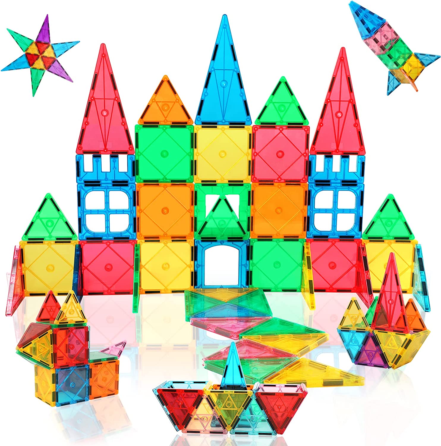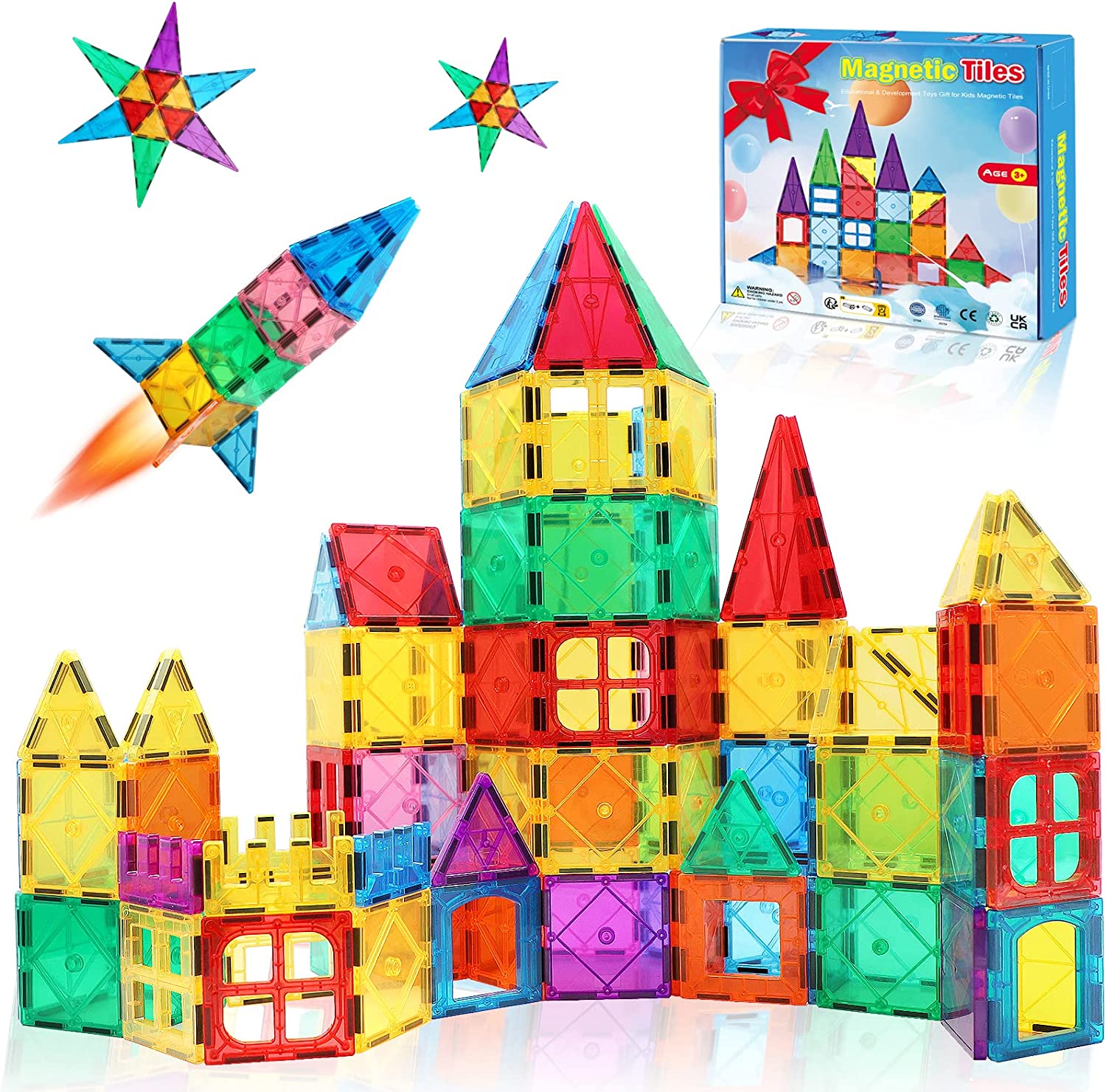 • [Magnetic Tiles for Toddlers] This advanced magnetic tiles for kids ages 3-5 set with an idea booklet, various construction tiles can be built by creativity such as castle, tower, rocket, animal, car, truck, cat, rabbit, plane, horse, dinosaur toys etc. STEM educational building toys help kids with education and brain development.