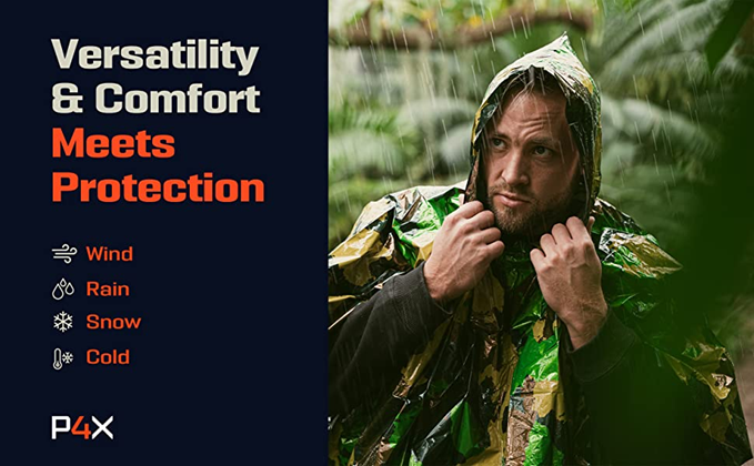 • NO MORE CLUTCHING EMERGENCY BLANKETS – Keep your hands free with our patent-pending Prepared4X wind-resistant and waterproof blanket poncho hybrid because we’ve combined the warmth of a mylar blanket with the mobility of a poncho.