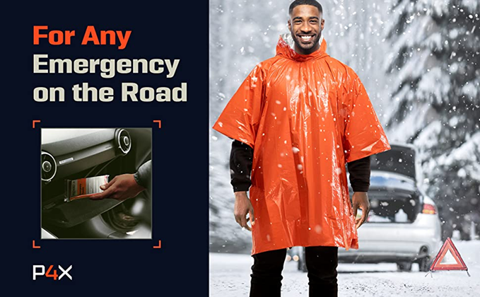 • 2X THICKER THAN THE AVERAGE EMERGENCY BLANKET – At Prepared4X, quality matters and we created our emergency poncho using durable, NASA-engineered, tear-resistant, and incredibly tough mylar, so you can retain 90% of body heat, keeping you warm and safe.