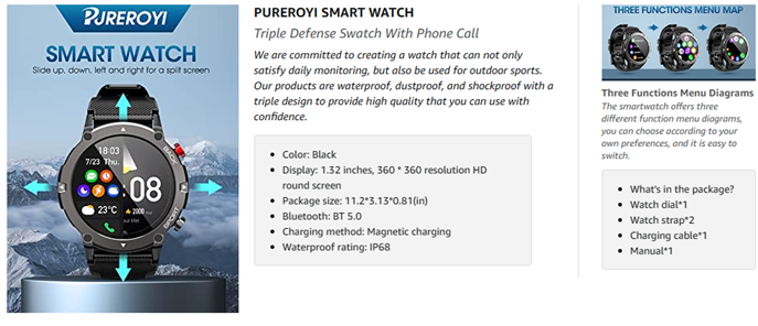 - ⌚【ALL-ROUND MANAGEMENT】- The smart watch can provide saturation measurement, sleep monitoring, as well as other functions to achieve total management from your wrist. All data can be synchronized to your phone for analysis and to help you create a scheduled routine to meet your goals.