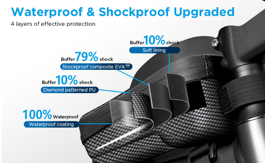• ☔【Harder & Pressure-Resistant】All-in-one design with 3D die-casting process make Whale Fall EVA bike phone bag hard, pressure-resistant and waterproof. Therefore, this bike phone holder is durable, shake-proof, pressure-proof and non-forming. This bike bag the perfect and indispensable bike accessories.
