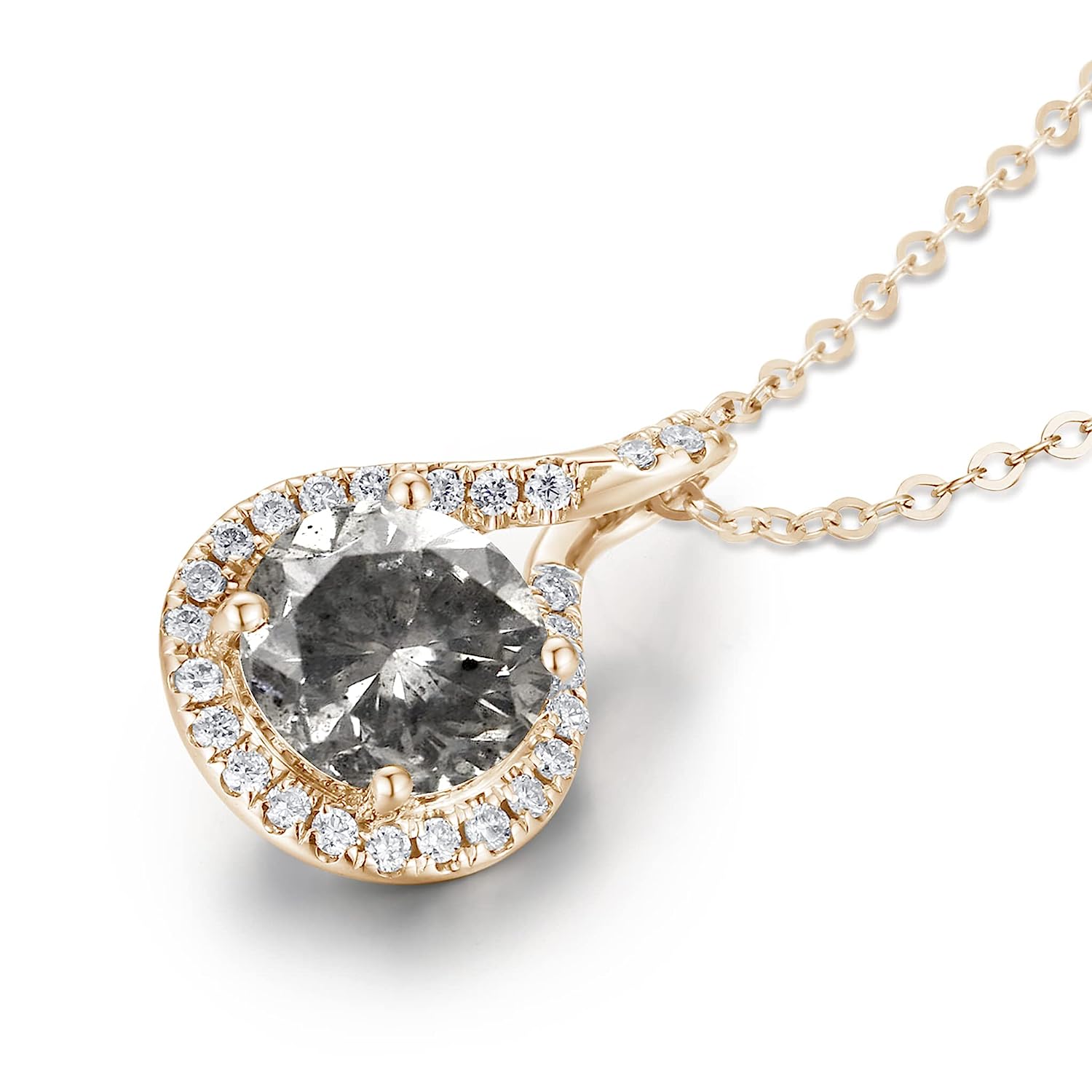Salt and pepper diamond necklace pendant-Dainty drop layering necklace with chain-Grey galaxy diamond necklace-Alternative April birthstone