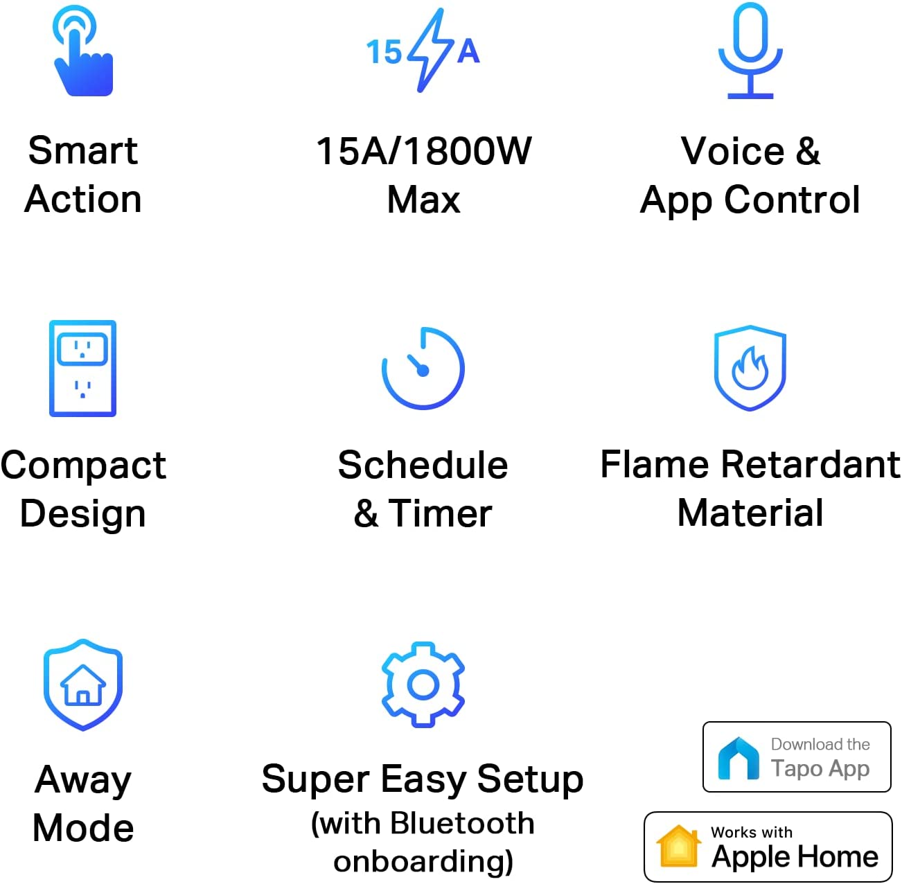 【App & Voice Control】Control your WiFi smart plug from anywhere, anytime via the free Tapo App or just give voice commands to Siri, Amazon Alexa, Google Assistant or Samsung SmartThings. Your favorite smart assistant enables you to have a truly hands-free experience.