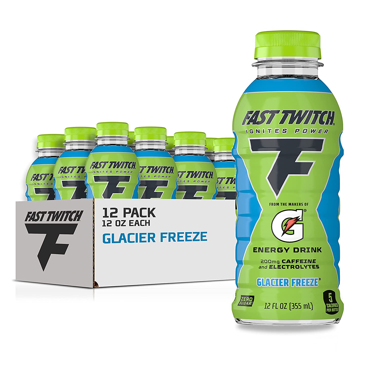 Fast Twitch Energy drink from Gatorade, Glacier Freeze, 12oz Bottles, (12 Pack), 200mg Caffeine, Zero Sugar, Electrolytes