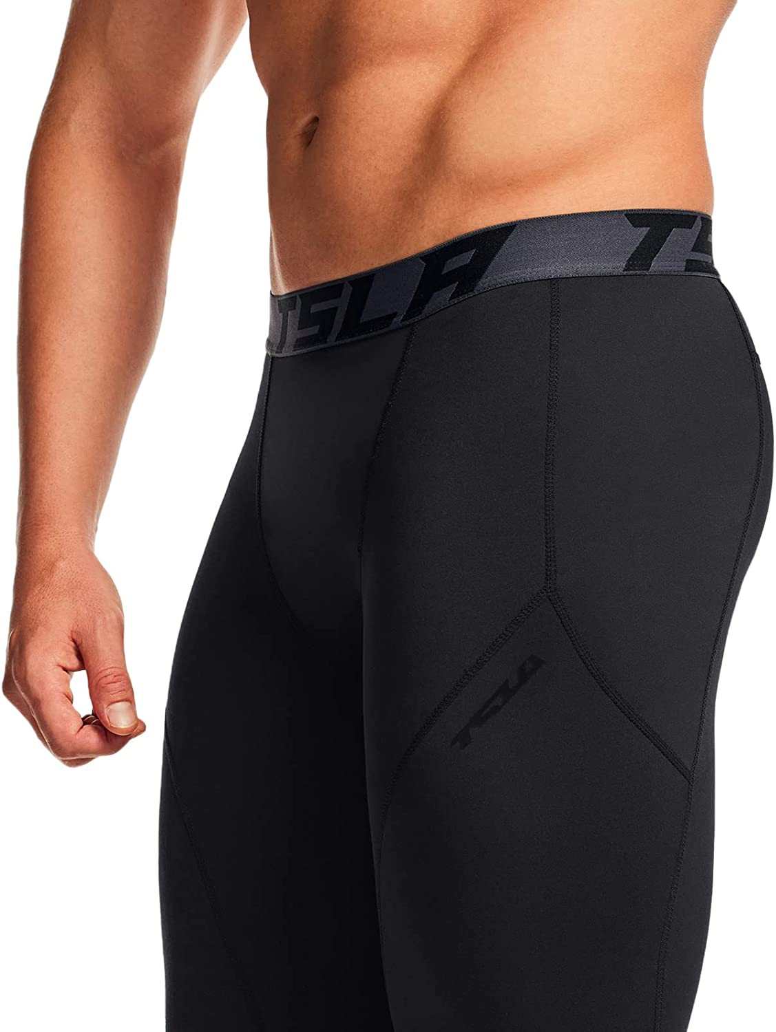TSLA 1 or 2 Pack Men's Thermal Compression Pants, Athletic Sports Leggings & Running Tights, Wintergear Base Layer Bottoms