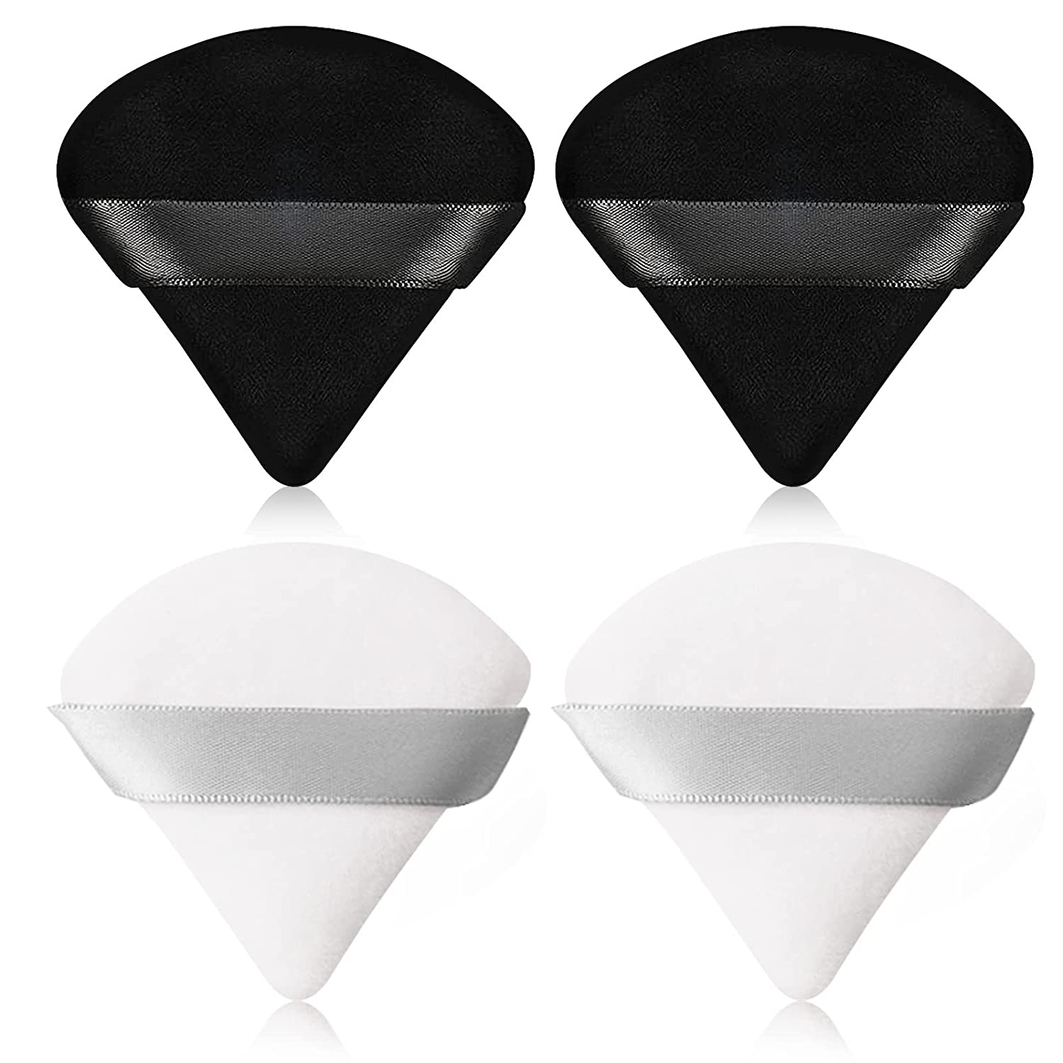 Pimoys 4 Pieces Powder Puff Face Makeup Sponge Triangle Powder Puff for Loose Powder Body Powder, Cosmetic Foundation Sponge Velour Setting Powder Puff Beauty Wet Dry Makeup Tool, Black and White