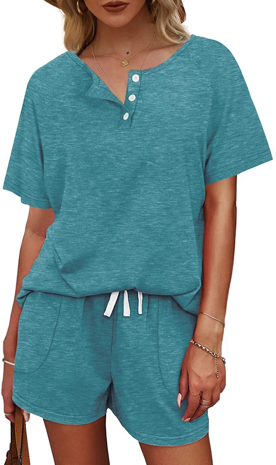 WIHOLL Two Piece Outfits for Women Lounge Sets Button Down Top and Shorts Set Sweatsuits with Pockets