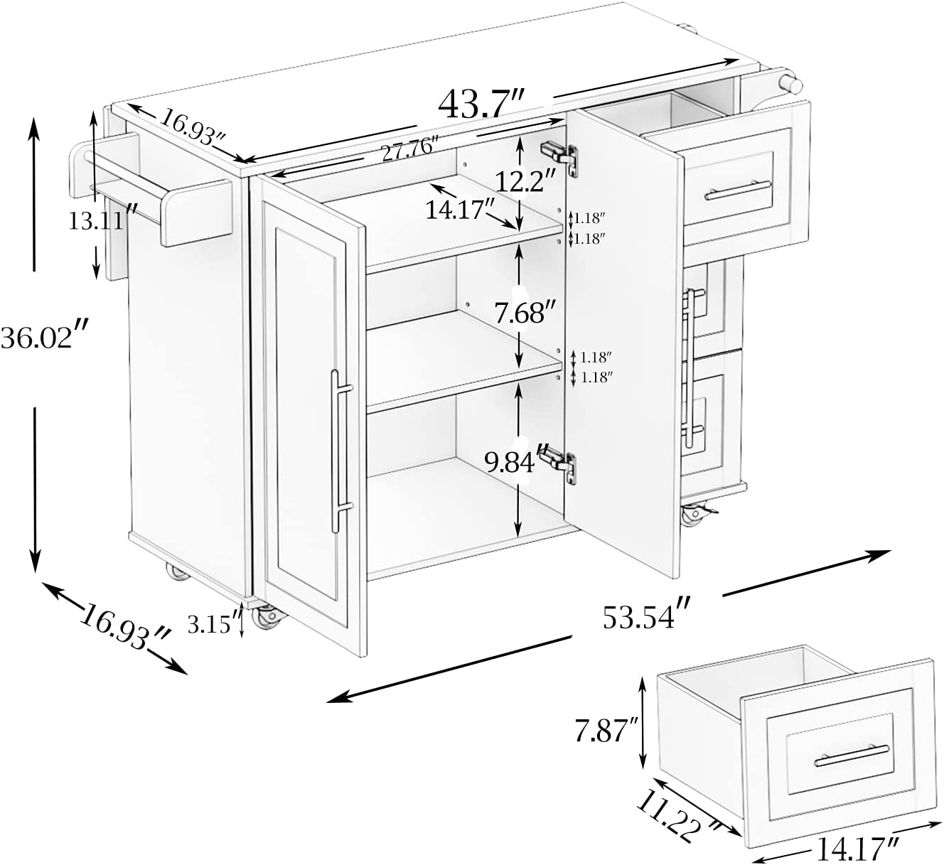 Multifunctional: its large cabinets with double-door design divide the space allocation to meet your needs. For storing dishes, pots and pans and other small appliances. Expandable leaf top.