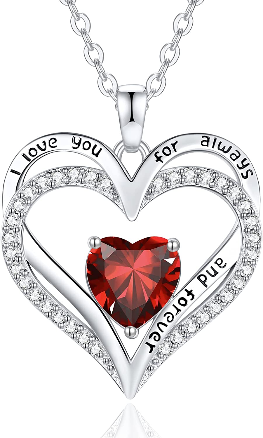• ❤ 925 STERLING SILVER NECKLACE--Heart necklaces for women girls has high quality hypoallergenic S925 sterling silver White Glod Plated with birthstone zirconia. Heart pendant jewelry word "I love you always and forever" is written on the heart necklace, which clearly expresses your love for her, no matter friendship, love or family affection.