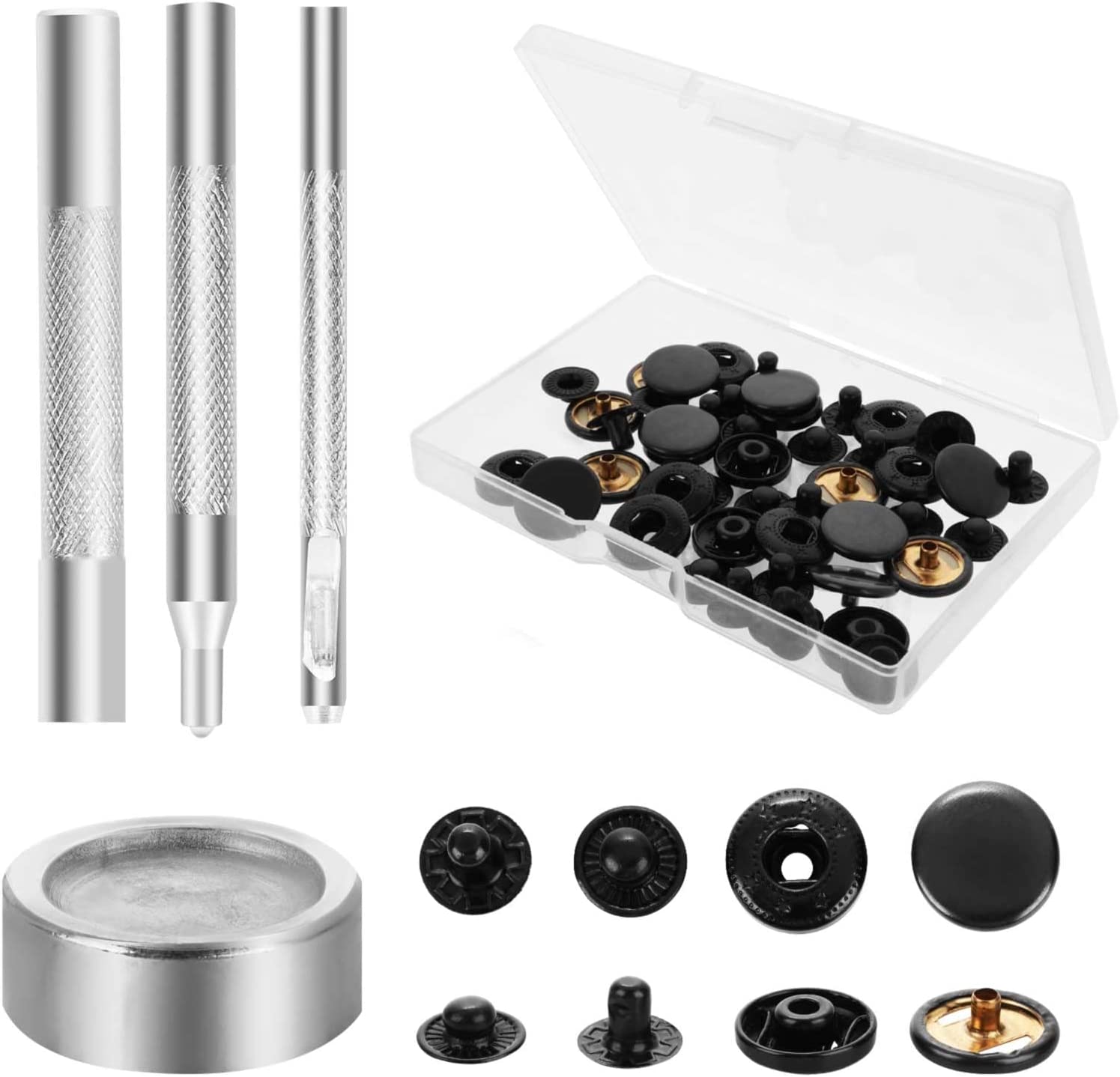 Package Content: You will receive the leather snaps and fasteners kit, including 12 sets of snap fasteners and 4 sets of installation tools, the snaps will be packed in a sturdy and portable plastic transparent box for easy storage and use, enough quantity to meet your daily needs.