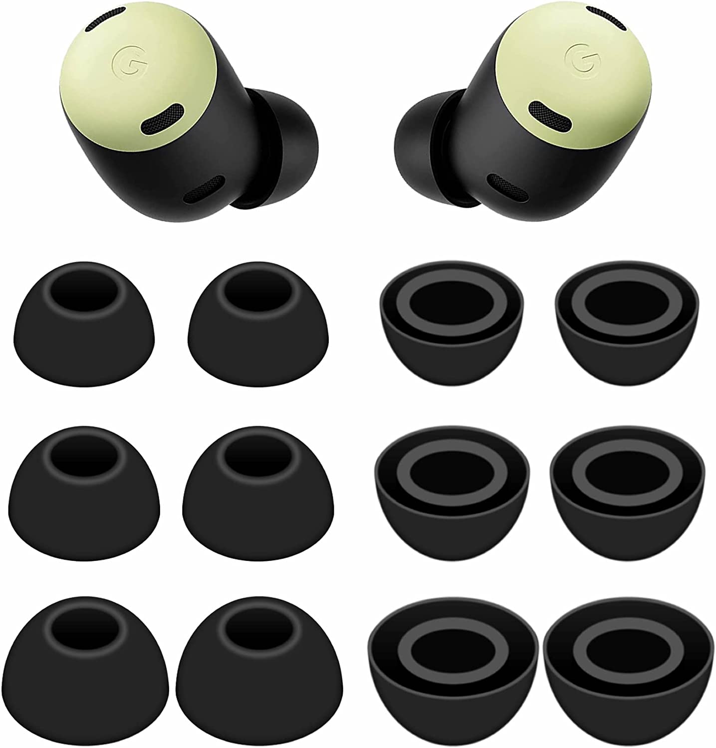 6 Pairs Eartips Compatible with Pixel Buds Pro Ear Tips Buds, Replacement Silicone Rubber Earbuds Gel Earplug Wing Fit in Case Accessories Compatible with Google Pixel Buds Pro - S/M/L Black
