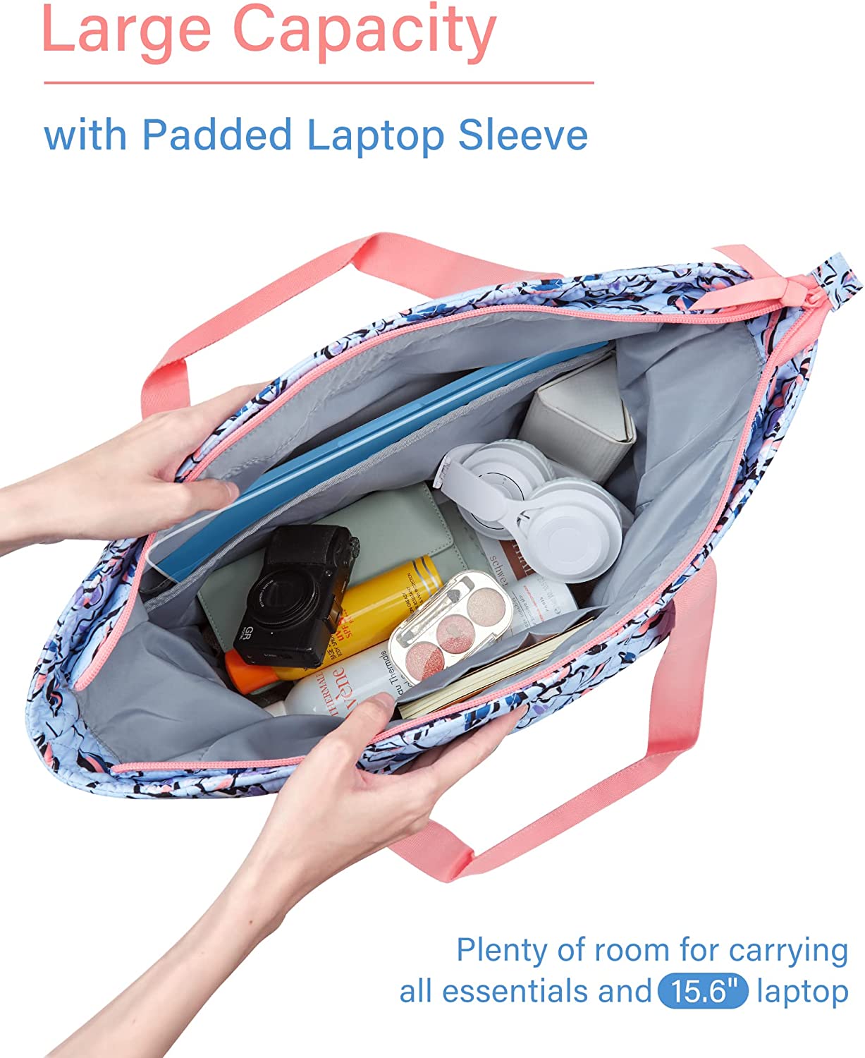 Fits All Your Essentials: The tote bag offers a spacious interior for carrying all your essentials. It's 16" wide and 14.5" tall with a 15.6" padded laptop sleeve and features durable top handles that provide a convenient carrying option