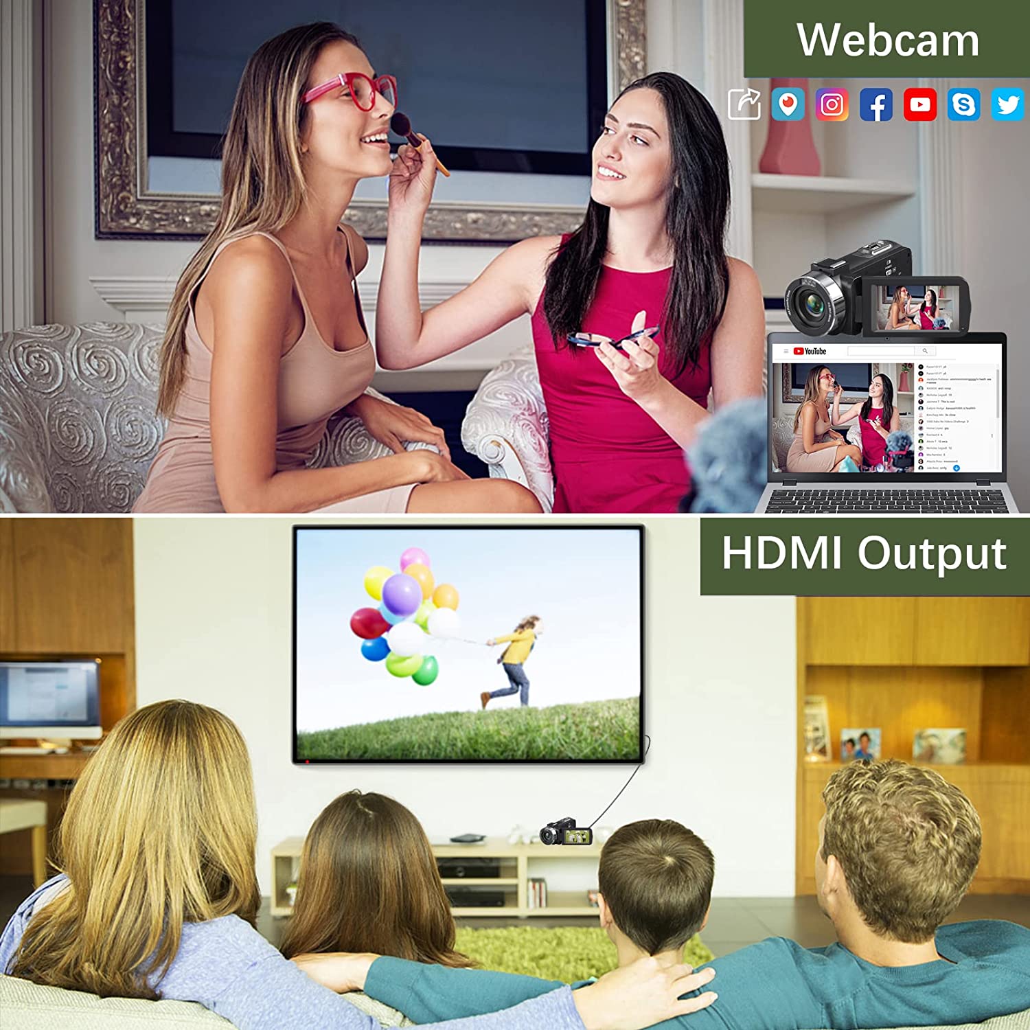 - 【2*Batteries & Remote Control】 The video camera is equipped with two rechargeable batteries to meet your daily needs without the need to worry about insufficient power.This video camera camcorder also comes with a remote control so that you can control it while it is sitting on a tripod. It will be very useful when you want to take family pictures without anyone being left out.