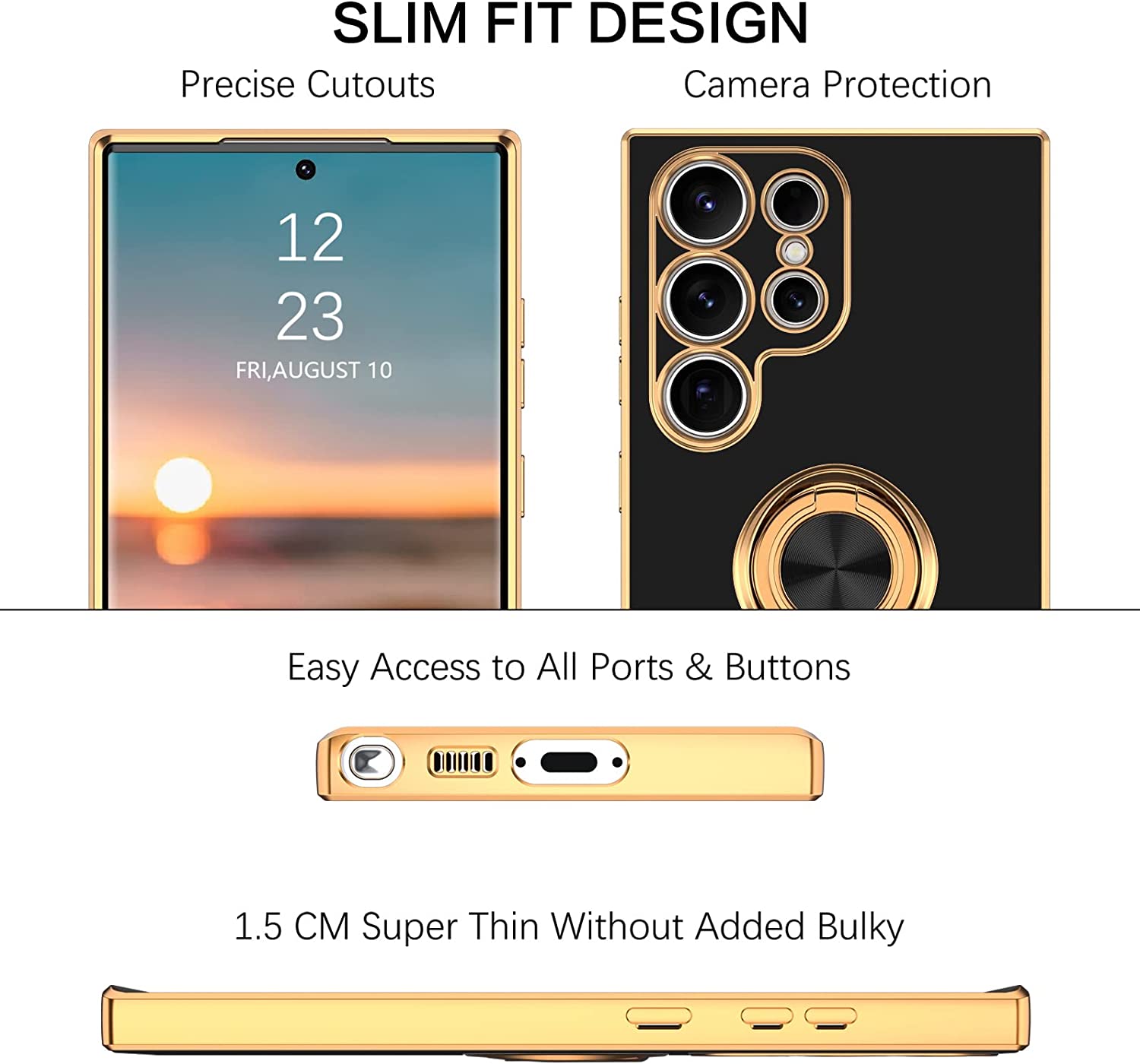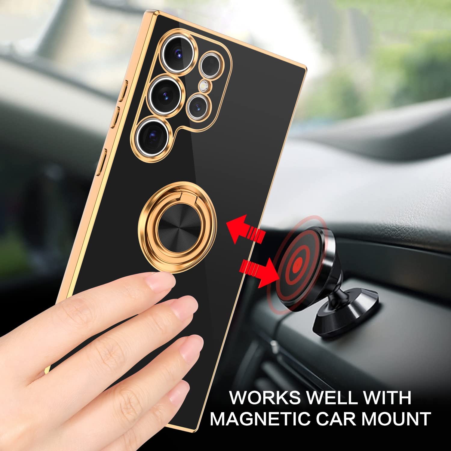 BENTOBEN Compatible with Samsung S23 Ultra Case with 360° Ring Holder, Shockproof Slim Kickstand Magnetic Support Car Mount Women Men Protective Phone Case for Samsung Galaxy S23 Ultra, Black/Gold