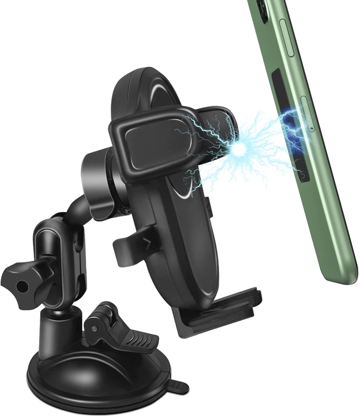 【Convenient Operation】This Phone Mount with the One-click release button design, you can just press the button on the side of the holder to release the two sides grips, then snap device into place, your phone is good and secure. Easy to place and remove your smartphones with just one hand.