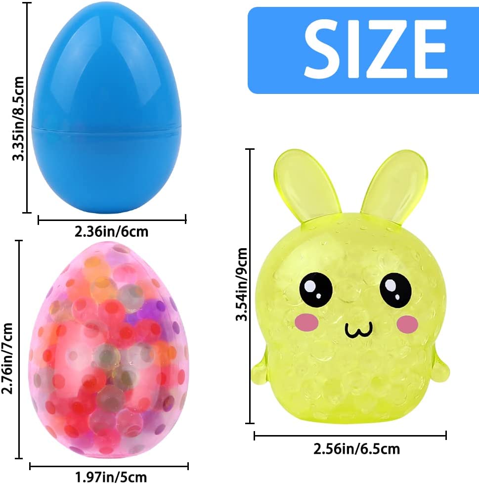 【Warm Tip】 Kids and adults will love the Easter bunny egg stress ball toys. Wash them with mild detergent or soap, and then dry them in a ventilated place for several hours to eliminate the slight rubber smell. Contains small colorful plastic water beads inside, so keep away from children 3 years old and under, keep away from pets to avoid accidental eating.