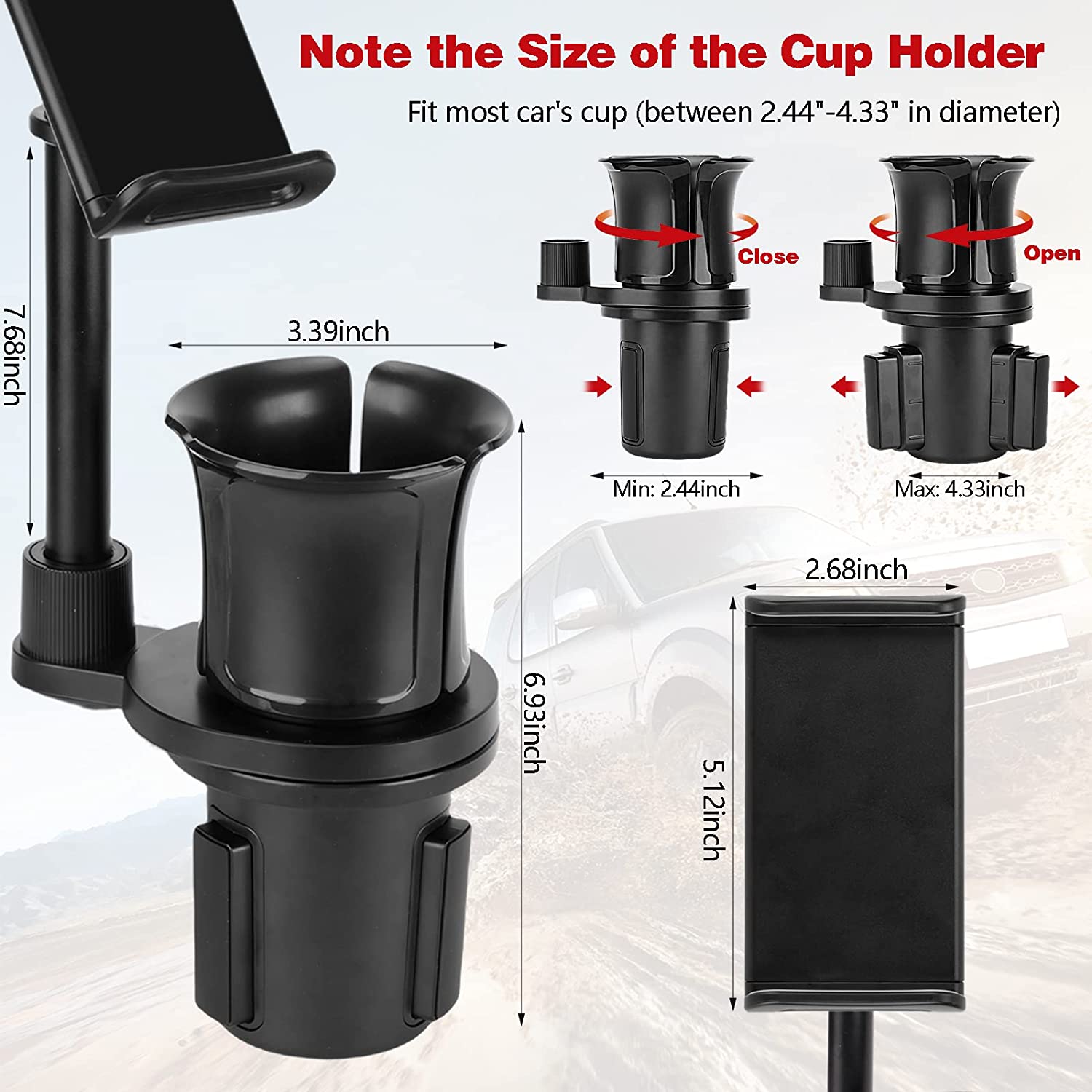 【Detachable Design And Use At Will】The cup holder expander and phone mount are detachable. According to the instruction manual, rotate the rod counterclockwise to remove the pole and phone mount. After disassembly, it is a complete cup holder expander, which can hold your cups well and save more space in the car. You can choose different usage methods according to your preferences. Please refer to the product size carefully before purchasing to determine whether it is suitable for your car.