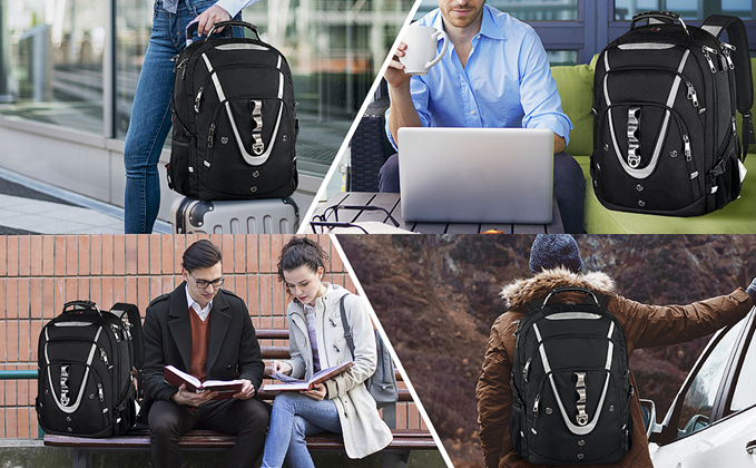 - TSA FRIENDLY & LUGGAGE STRAP : At checkpoint, unfolds the backpack freely 180 degrees making you quickly through the airport security, exclusive designed for airplane traveling. You can attach the backpack to the trolley case of the luggage strap. Unleash the pressure on your shoulders and make your journey easier. Served as durable large backpack, large laptop bag or spacious college backpack for students, you can use it at anywhere for International travel ,camping,hiking and overnight trip.