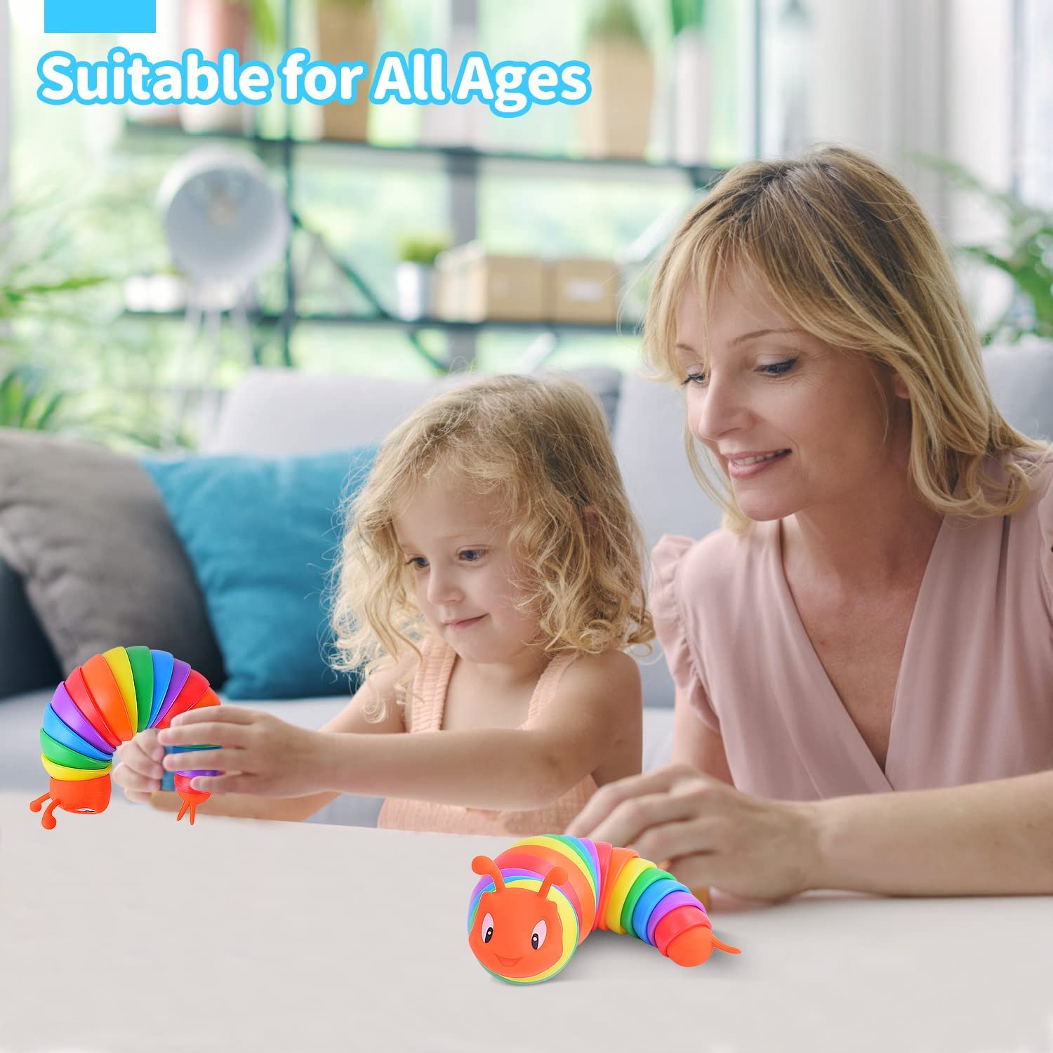 Fidget Slug Toy, Autism Sensory Toys for Autistic Children 3-12 Years Old Kids Toddler, 3D Printed Rainbow Cute Worm Fidgit with Anxiety Relief Therapy, Finger Bug Gift for Girls Boys Birthday