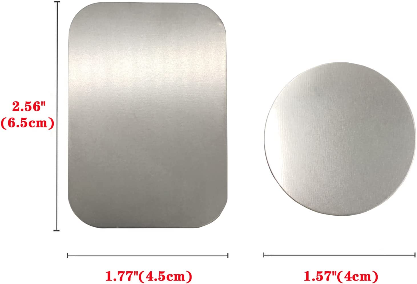 Thin phone magnet 4.5 cm x 6.5 cm rectangular metal plate (2Pcs), diameter 4 cm ( 2Pcs) round metal plates