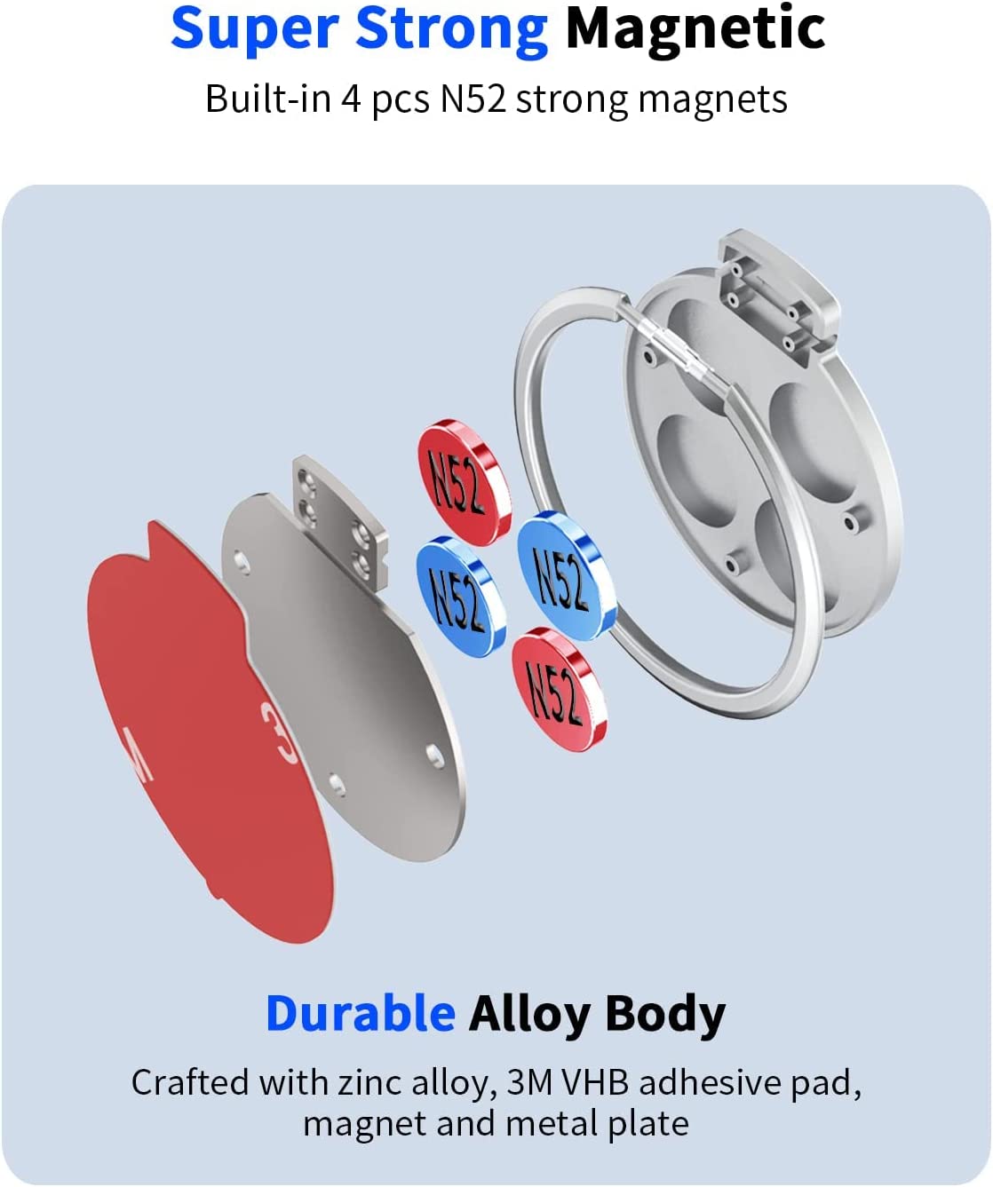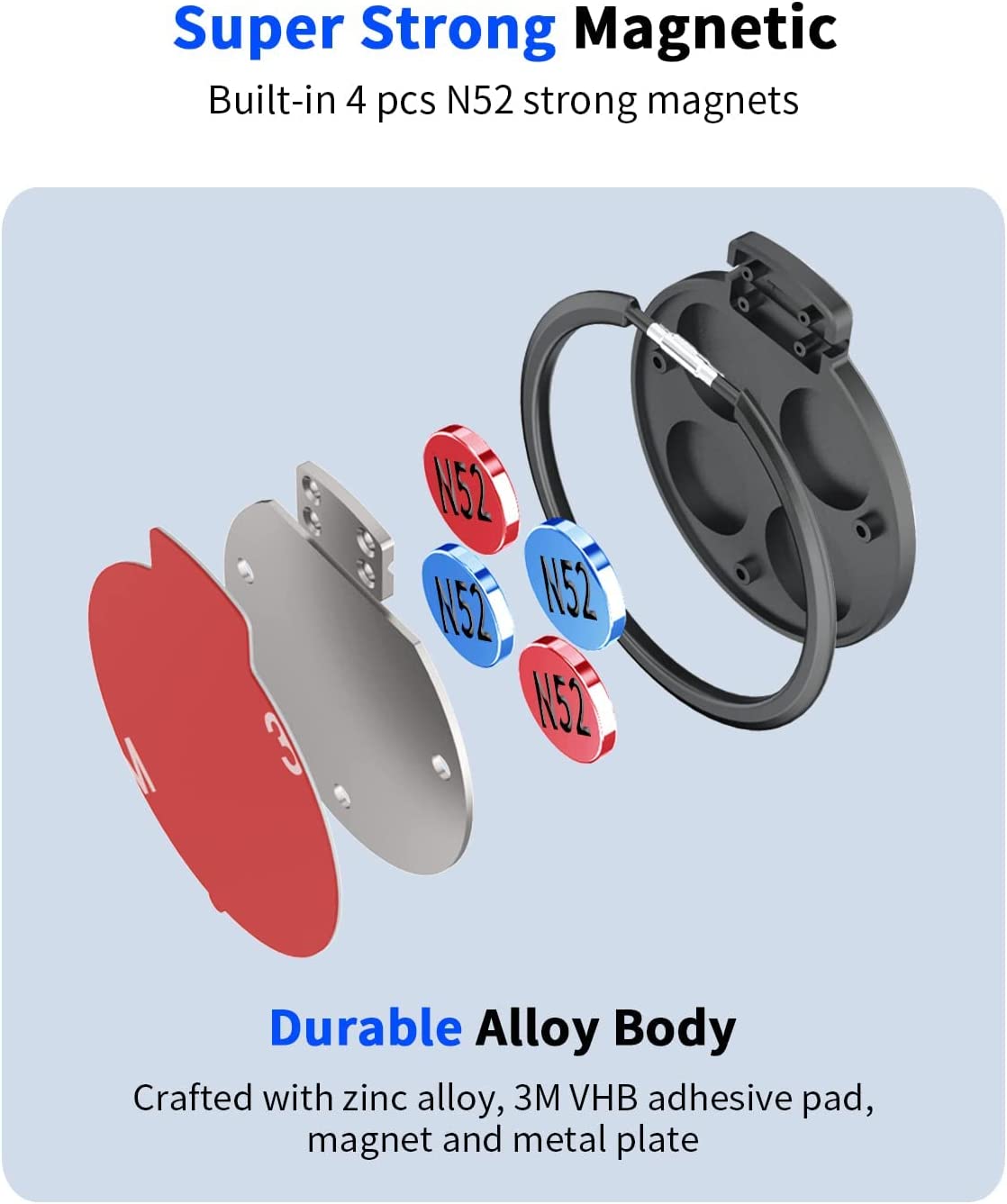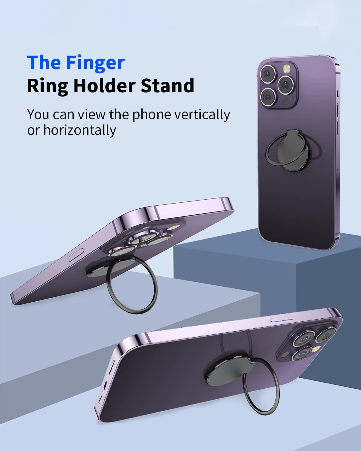 CHEEDAY Magnetic Phone Ring Holder Wall Mount [4 Strong Magnets] Gym Magnet Phone Finger Ring Grip Desk Stand Car Mount [with 2 Metal Plate] Compatible with iPhone 12 13 14 Pro Max, Android - Black
