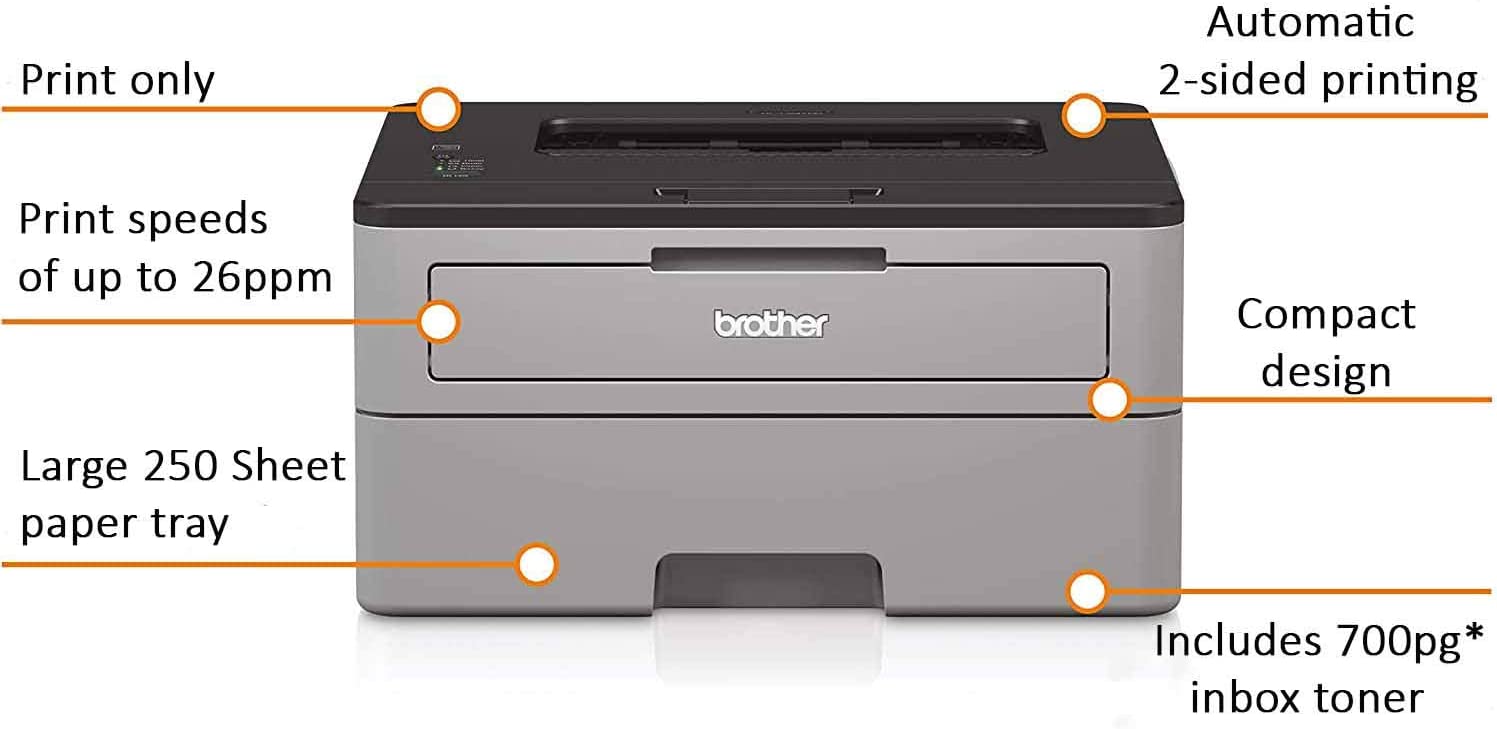 Reliable Affordable Monochrome Laser Printer For Personal or Home Office Use. Automatic Duplex Printing, Compact Size, Print Speed Up To 27ppm. High Speed USB Interface. Media Type - Plain, Bond, Envelopes, Labels; Sheet Weight - Manual Feed (Min/Max) - 16-43 lbs. (bond),Sheet Weight - Paper Tray (Min/Max) - 16-28 lbs. (bond), Machine Noise (Ready/Printing) - 31dB/49dB,Power Source - AC 120V 50/60HzConsumable Type - Toner Cartridge and Drum. Supported OS-Windows 8(32 & 64 bit editions), Windows 7 (32 & 64 bit editions), Windows Vista (32 & 64 bit editions), Windows XP Professional (32 & 64 bit editions), Windows XP Home Edition, Windows Server 2012R2, Windows Server 2012, Windows Server 2008R2, Windows Server 2008 (32 & 64 bit editions), Windows Server 2003 (32 & 64 bit editions). OS X 10.7.5, 10.8.x, 10.9.x or greater. Linux CUPS, LPD/LPRng (x86/x64 environment).