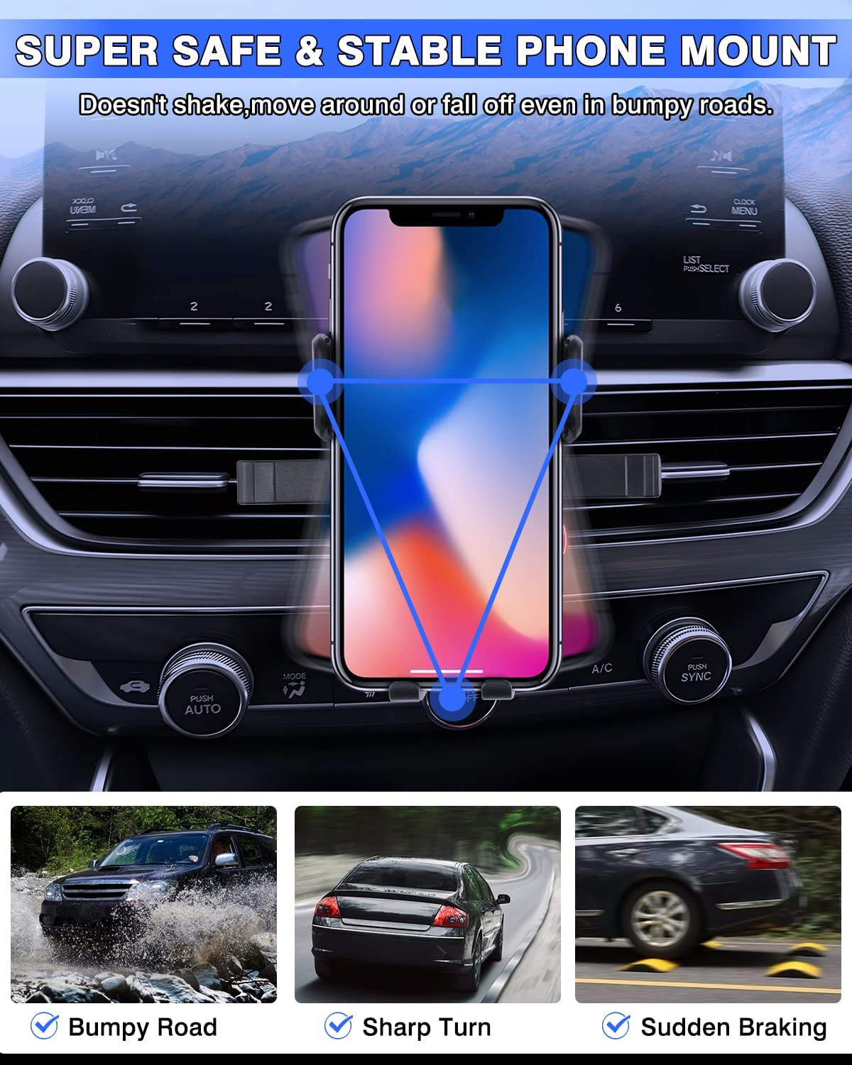 【Custom Fit for 10th Gen. Accord Accessories】The phone holder fits for Honda Accord 2018 2019 2020 2021 2022 Accessories. Special mount fits perfectly to the dash air vent, very secure, doesn’t obstruct buttons or any functions.