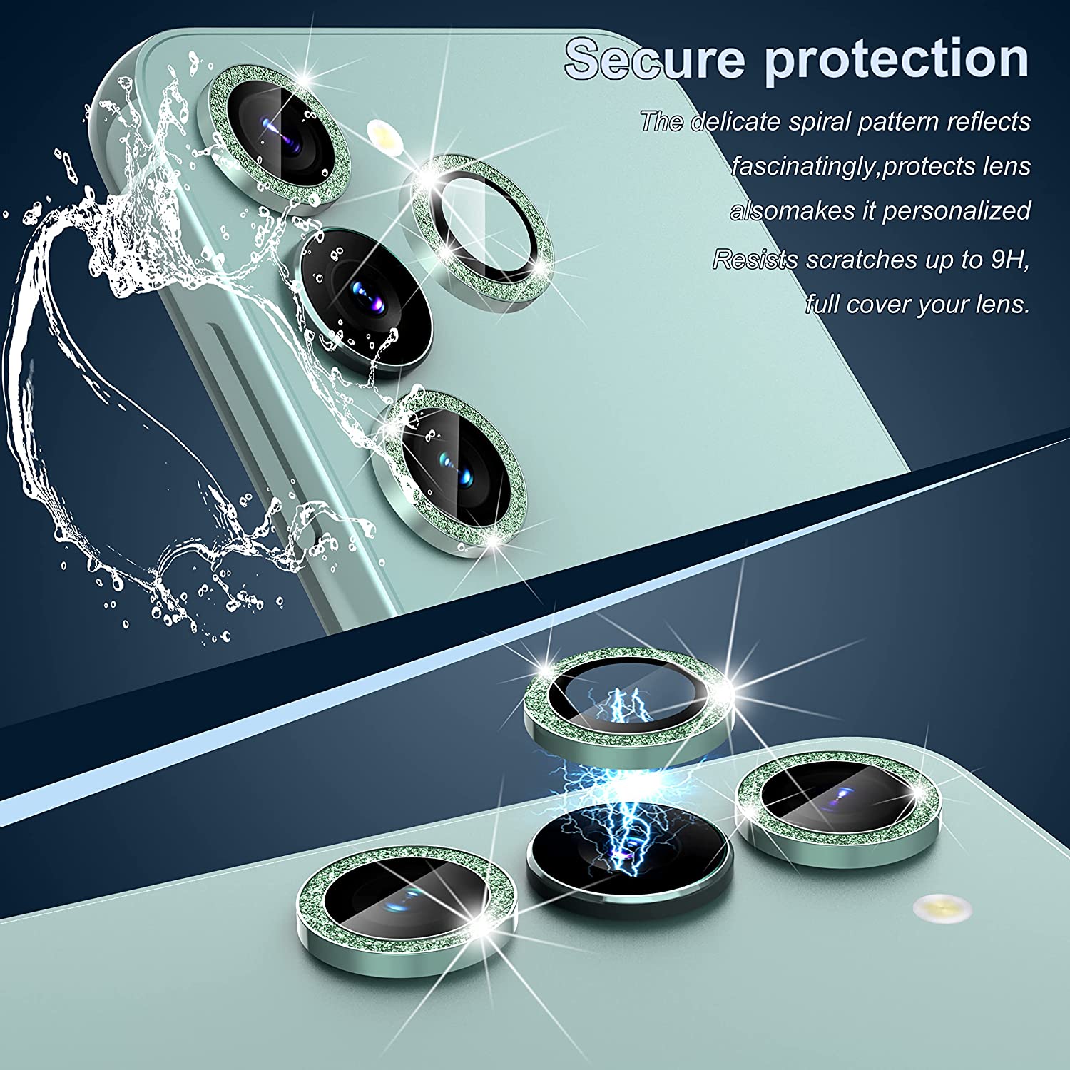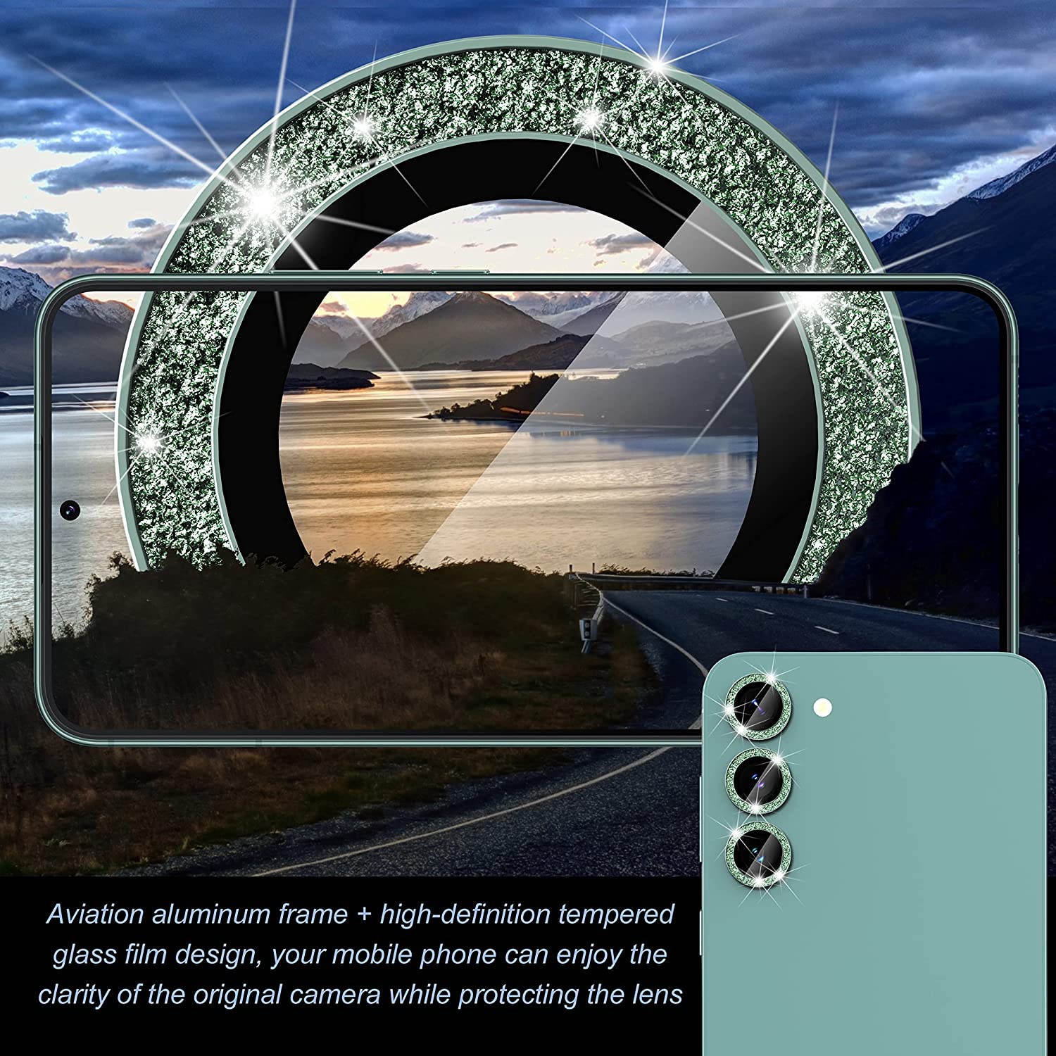 Suoman [3+3 PCS] for Samsung Galaxy S23/ S23 Plus Camera Lens Protector, Premium Tempered Glass Glitter Camera Lens Protector for Samsung Galaxy S23/ S23+ [Glitter Diamonds] - Bling Green