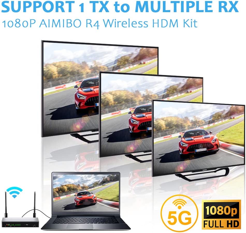 - 【Up to 8 Kits use in one location】 - Each pair of AIMIBO Wireless HDMI transmitter and receiver can be set with a independent channel to allow multiple extender kits to be used in the same environment without interference.