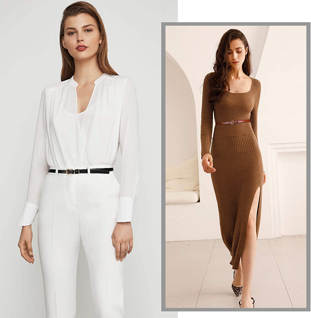 JASGOOD Women's Skinny PU Leather Belt Solid Color Fashion Thin Waist Belt with Gold Buckle for Jeans Pants 1/2 Width