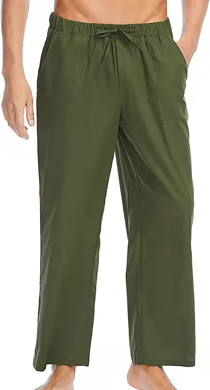 YKARITIANNA Men's Drawstring Cotton Linen Pants Casual Pants Elastic Waist Yoga Summer Pants Baggy Sweatpants for Men