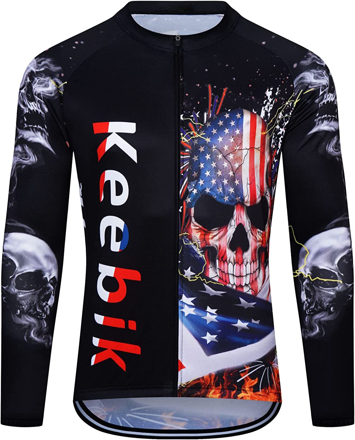 Keebik Men's Cycling Tops Bike Clothing Long Sleeve Biking Shirts Full Zipper Bicycle Jacket with Pockets