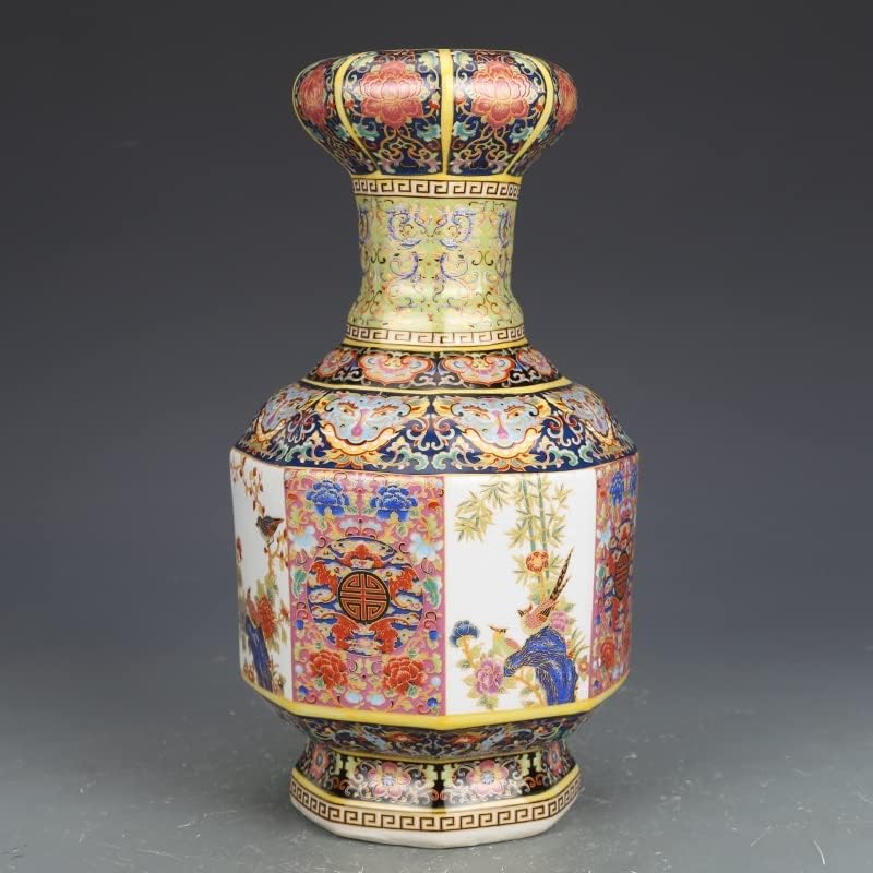ZSEDP Antique Ceramic Vase Enamel with Flower Birds Pattern Old Ancient Porcelain Offcial Kiln