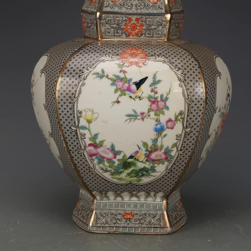 ZSEDP Jingdezhen Antique Enamel Square Vases Flowers and Birds Pattern Ancient Porcelain