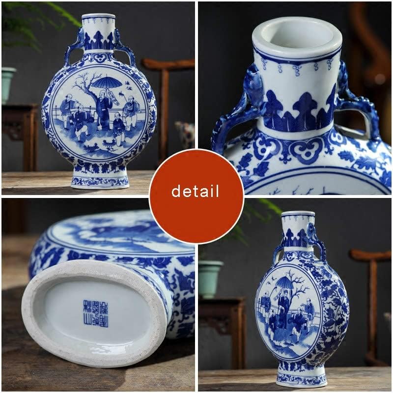 ZSEDP Jingdezhen Antique Blue and White Vase with Chinese Ancient Figures Pattern Double Ears Vase Ancient Porcelain