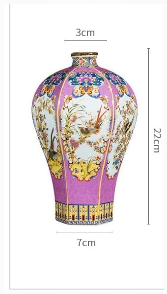 ZSEDP Ceramic Vase Ornaments Antique Enamel Porcelain Hexagonal Red Vase Gift Classical Home