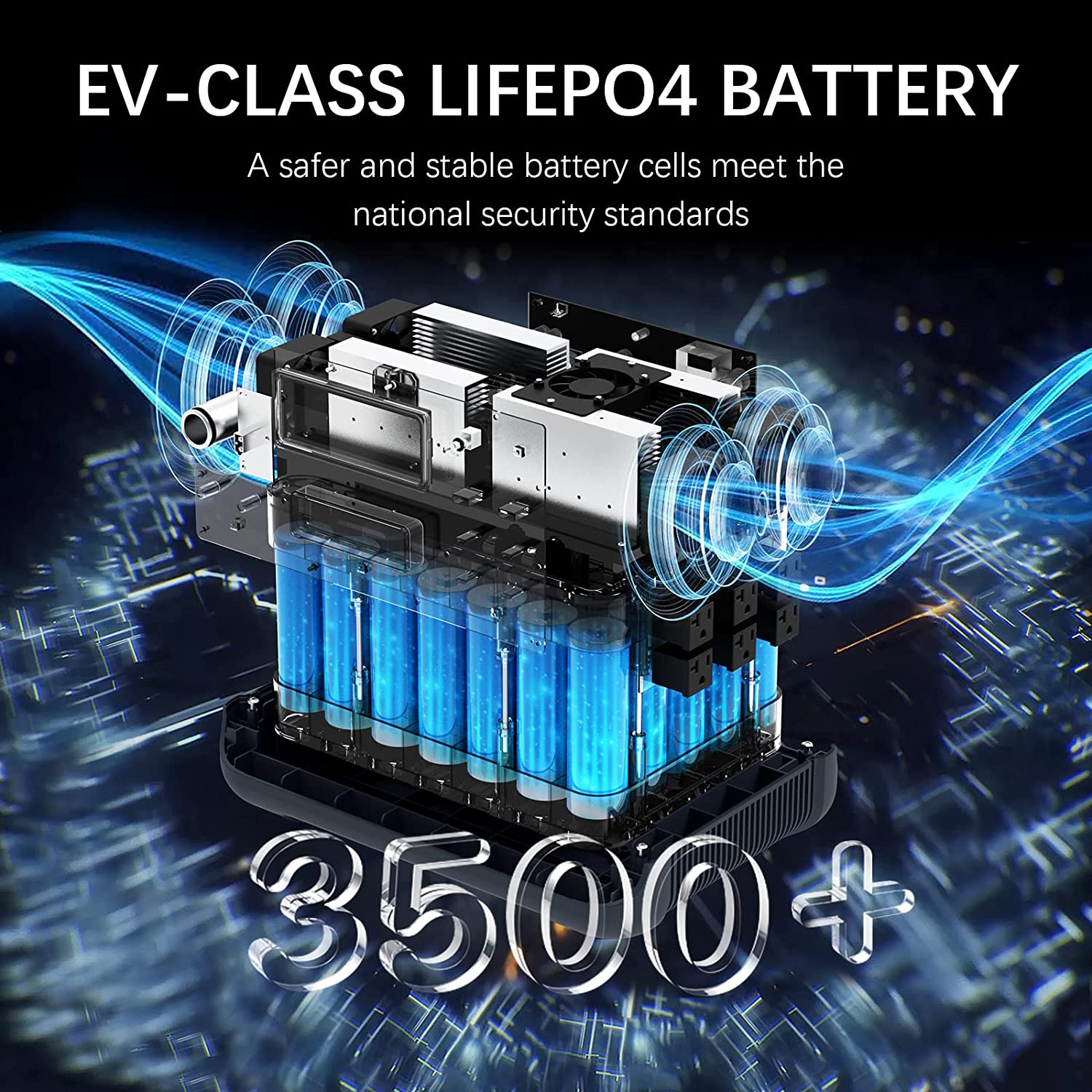 - 【LiFePO4 BATTERY】 Portable power station adopts LiFePO4 battery, which has 3500+ super long life and service life of 4-7 times than other batteries on the market. That’s almost 15 years of regular use. Compared with traditional lead-acid batteries, it has a safer and more stable battery structure, which are the safest battery type in the market and UL authorized batteries.