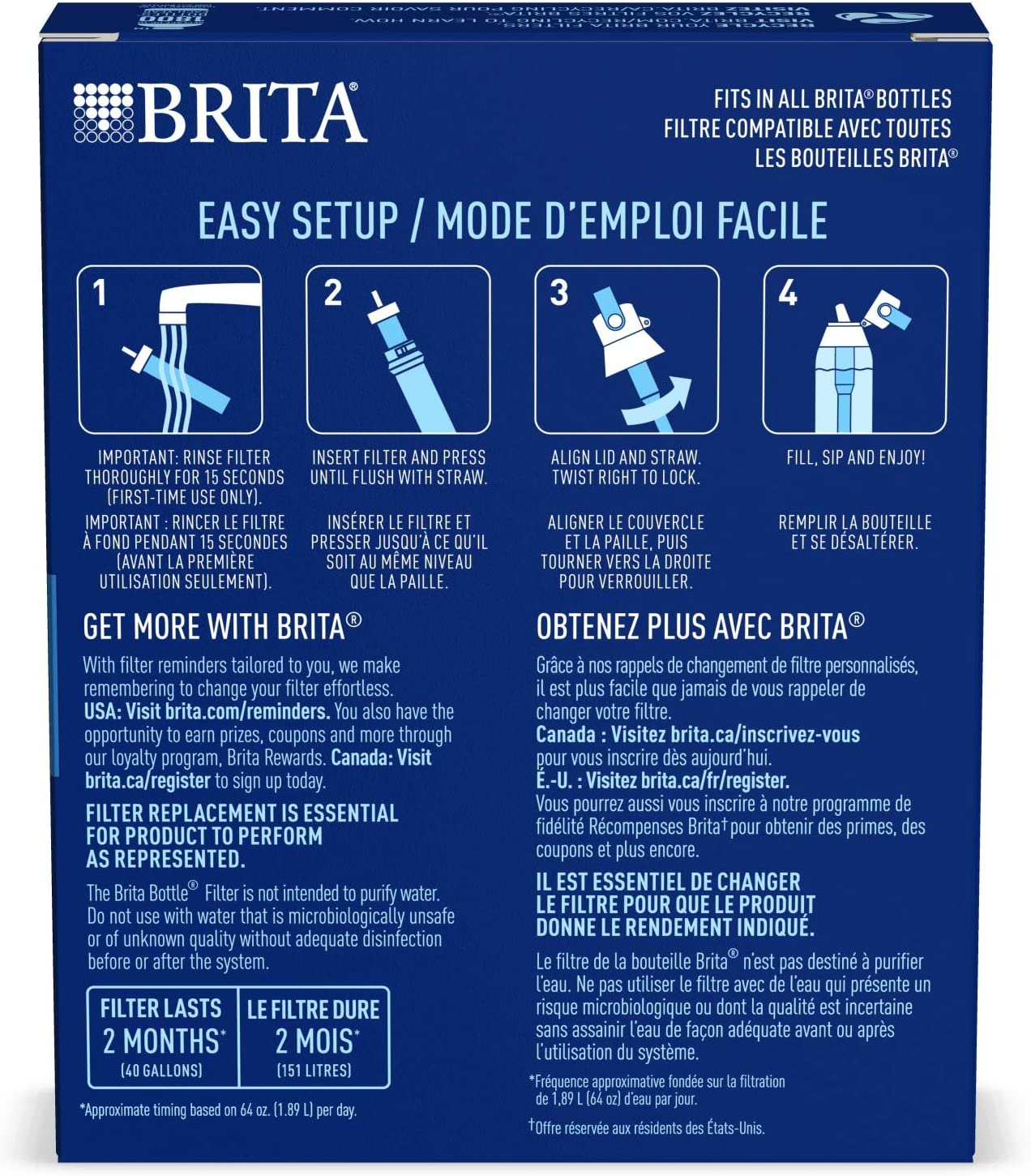 Brita Water Filter Replacements for Water Bottles, Lasts 2 Months, Reduces Chlorine Taste and Odor, 3 Count