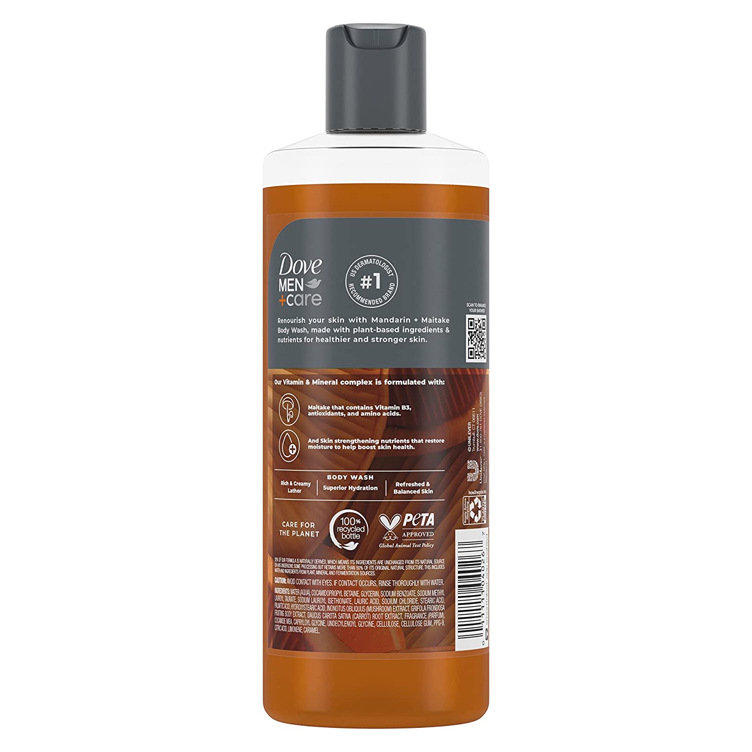 Renourish your skin with Dove Men+Care Renourish Mandarin + Maitake Body Wash, made with plant-based ingredients and nutrients for healthier, hydrated, and stronger skin.