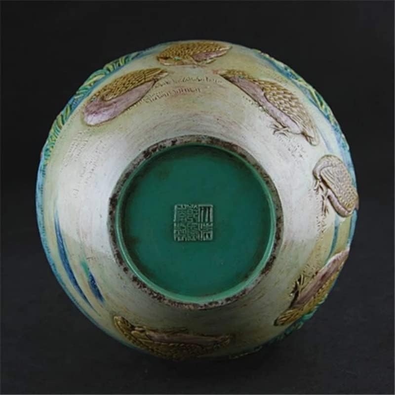MJWDP Classic Green Ceramic Vase Embossment Antique Porcelain Flower Vase for Decoration