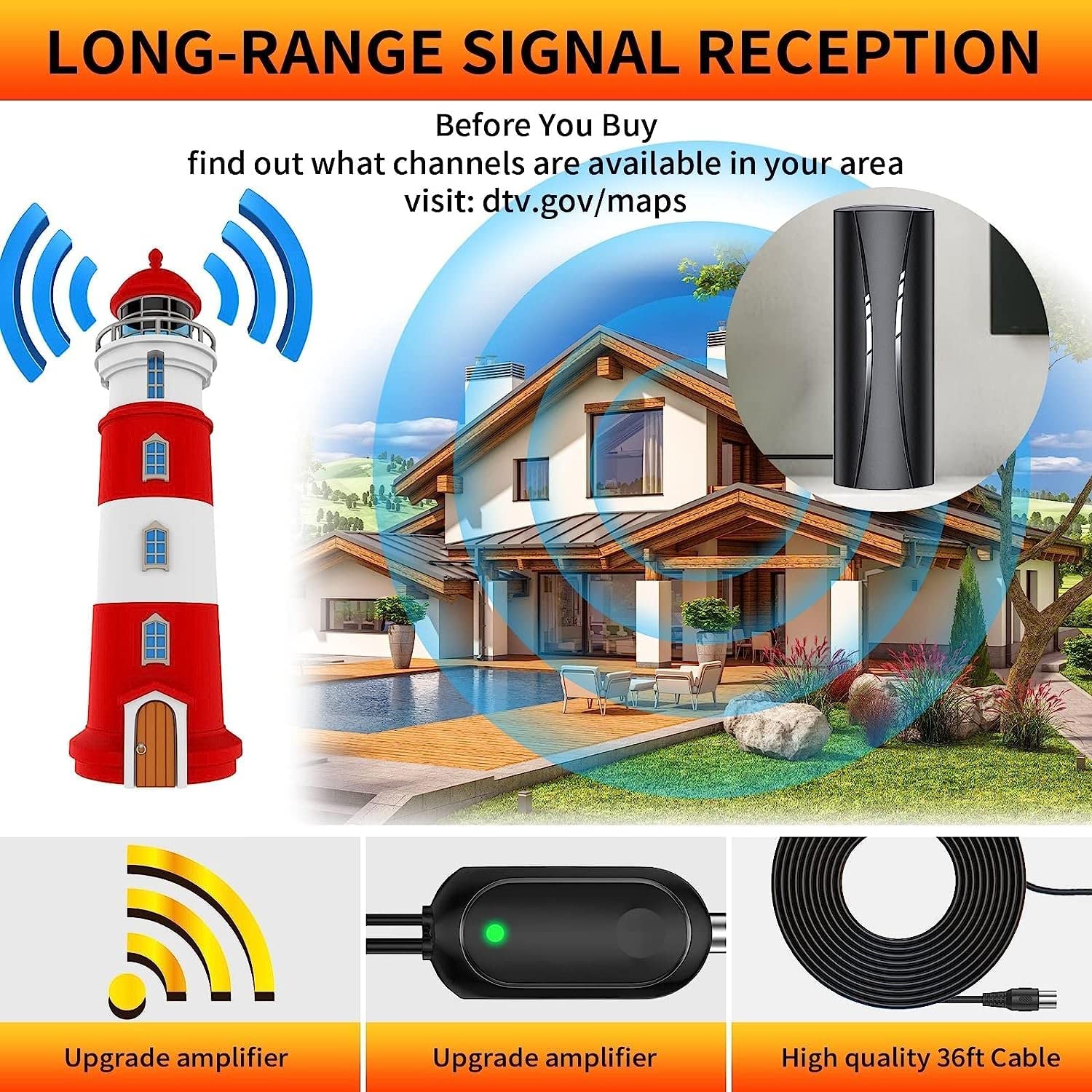 - 【560 Miles Reception with 360 Degree】Indoor TV Antenna can receive signals from 360° direction. Our antenna tv digital hd indoor are built-in upgrade Amplifier Signal Booster, also works as a portable antenna in RV or tent on your next trip. We promise you can pick up full hd channels when you are far far away from it