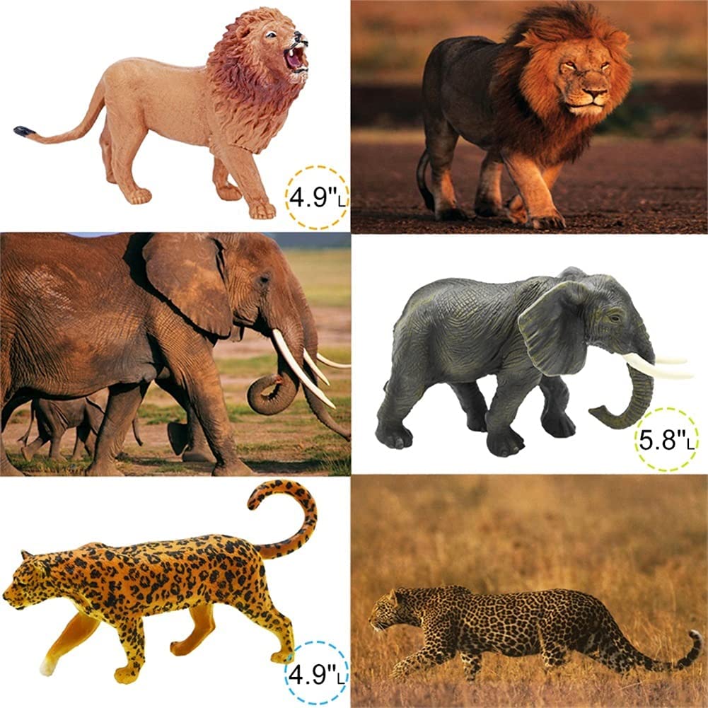 - LEARNING EDUCATIONAL TOY: They're also the great pretend play props, enhancing vocabulary, language skills, creative thinking and active cognitive learning through imaginative play. Realistic detailed safari animals are easy for toddler to distinguish, it's the good learning resource. Also the animal playset can also make away your kids from electronics which can protect their eyesight.