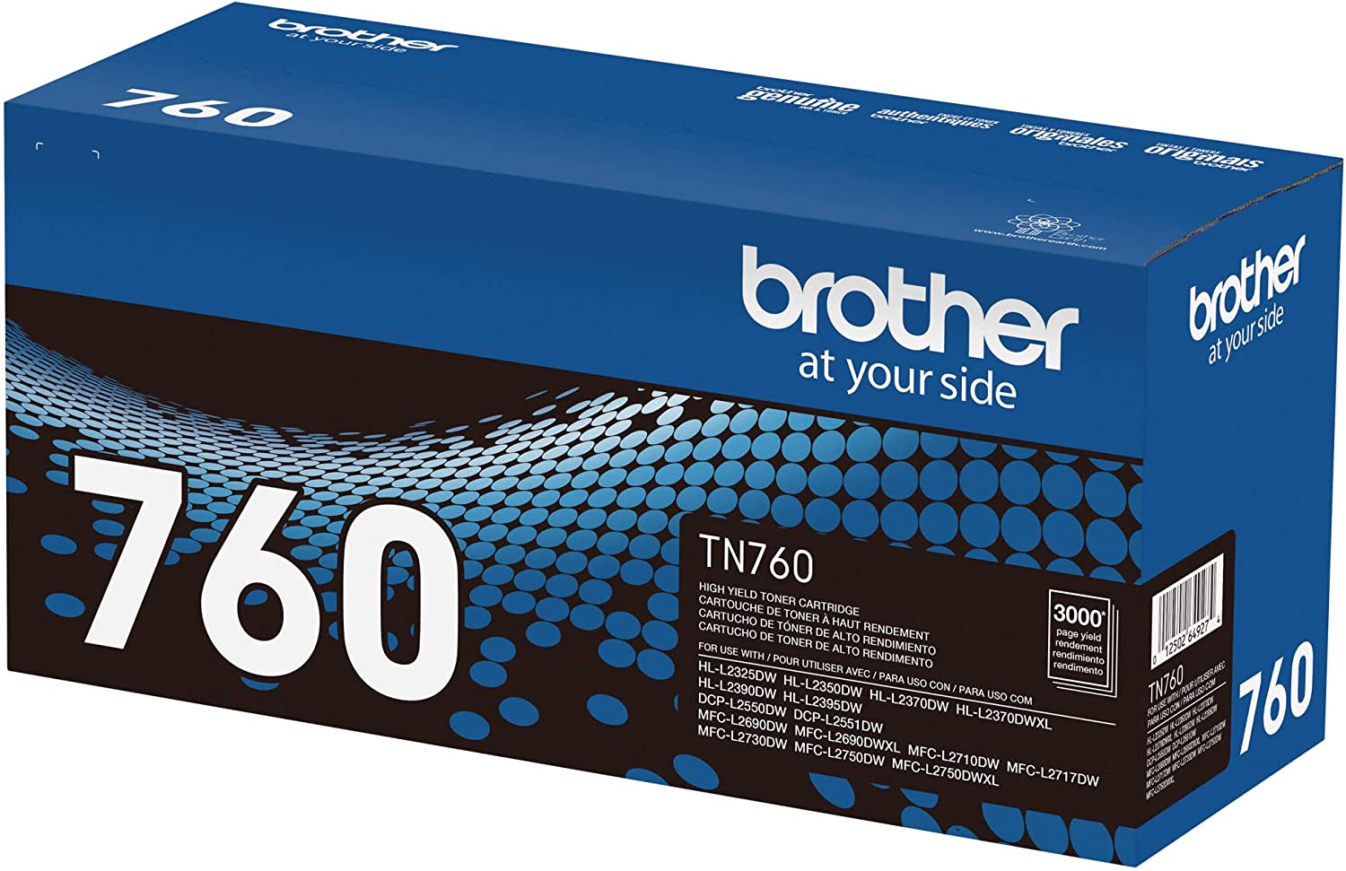 The use of Brother Genuine replacement high yield toner cartridges like the TN 760 not only produces sharp, black and white pages with the quality you expect from Brother products – it also increases productivity and can reduce downtime when fulfilled through Amazon Dash Replenishment. The Brother TN 760 replacement laser black toner cartridge is for use with 9 Brother products. This professional cartridge is intelligently engineered to work in seamless unison without compromising the quality of the print. Upon activation, Amazon Dash Replenishment–eligible Brother printers will seamlessly order Brother Genuine supplies through your Amazon account and ship them directly to your door. The Brother Genuine TN 760 replacement high yield black toner cartridge can print approximately 3,000 pages(1). Once you’ve ordered your replacement cartridges from Amazon, you can feel comfortable knowing that Brother has an environmentally smart solution. Brother is dedicated to being environmentally responsible and offers disposal programs for properly discarding its cartridges. This replacement cartridge is for use with the following Brother printers and all in ones; DCPL2550DW, HLL2350DW, HLL2370DW, HLL2370DWXL, HLL2390DW, HLL2395DW, MFCL2710DW, MFCL2750DW, MFCL2750DWXL.