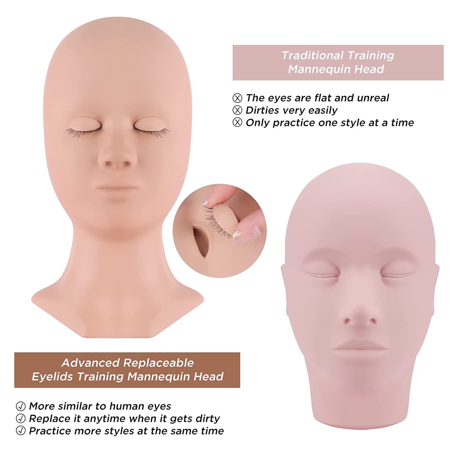 ✔️EYELASH MANNEQUIN HEAD WITH EYELIDS: BEYELIAN Lash Mannequin Head has 4 pairs of replaceable eyelids, which can help lash artists practice the placement of different types of eyelashes extensions at the same time.