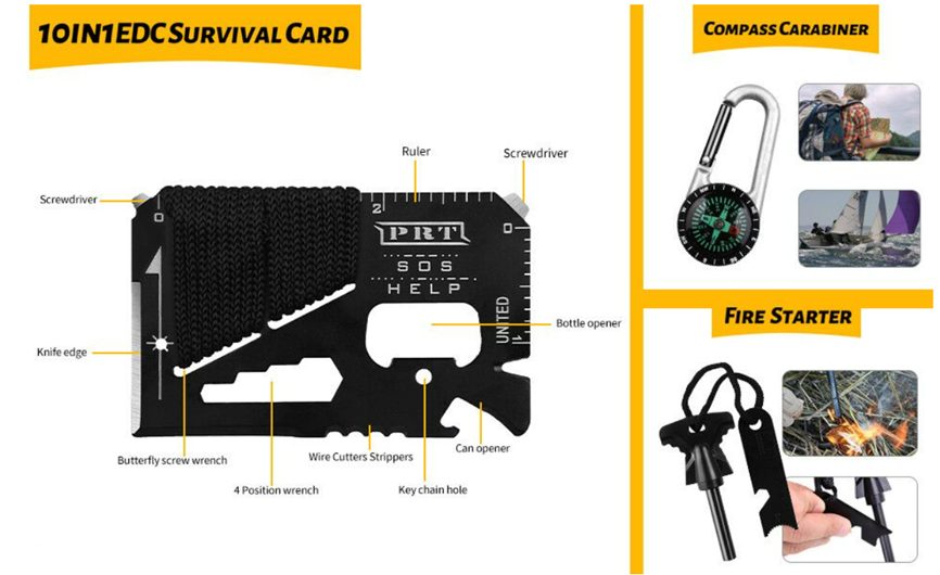 | Included Components | Whistle, Knife, Water Bottle Clip, Wire Saw, Flint, Tactical Flashlight, Hooks, Flashlight, Waterproof Box, Compass |