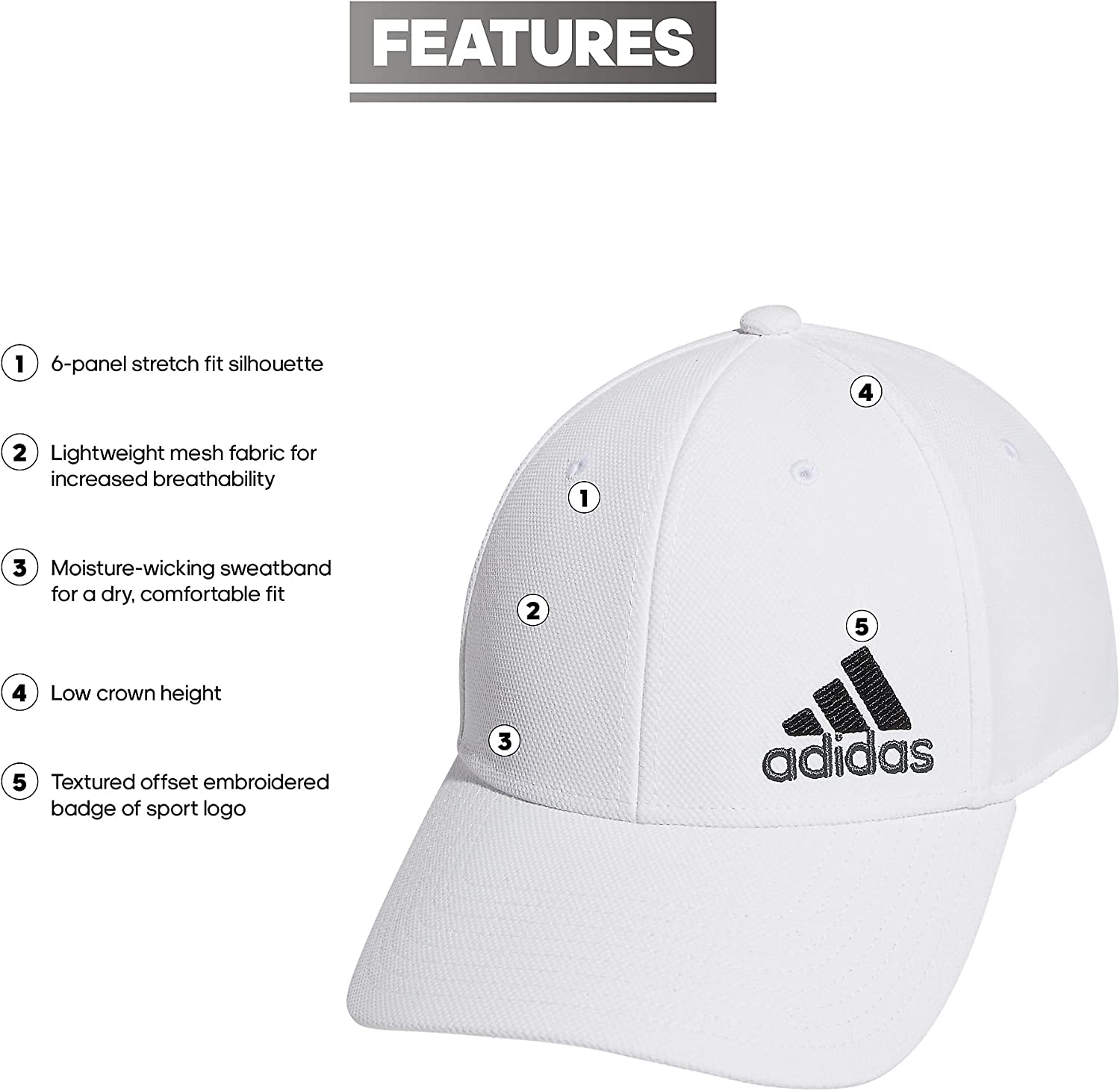 Designed for comfort during any workout, this men's hat is made with stretch fabric. A moisture-wicking sweatband keeps your forehead dry and your focus on your session. An embroidered adidas Badge of Sport sits proudly in front.