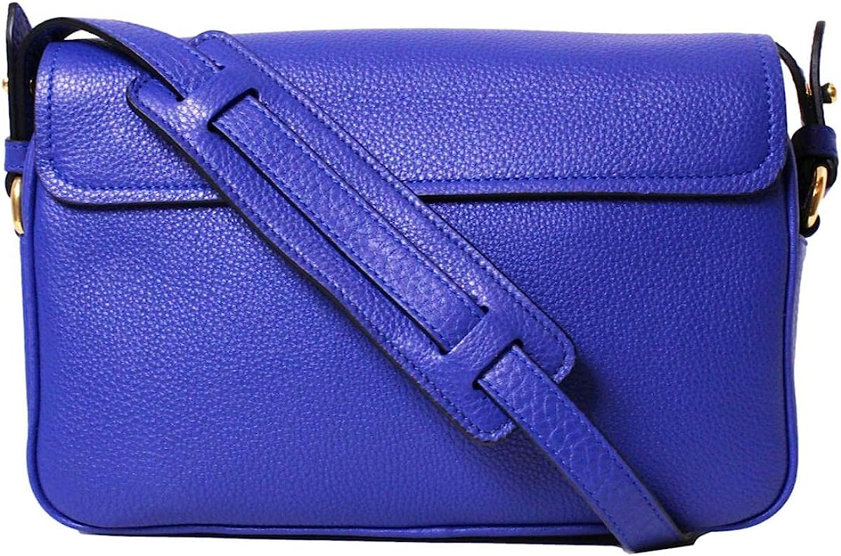 Color: Royal Blue. Material: Calf Leather. Gold-tone Hardware. Magnetic flap fastening. Zipper fastening. Interior black jacquard lining. One interior slip pocket.