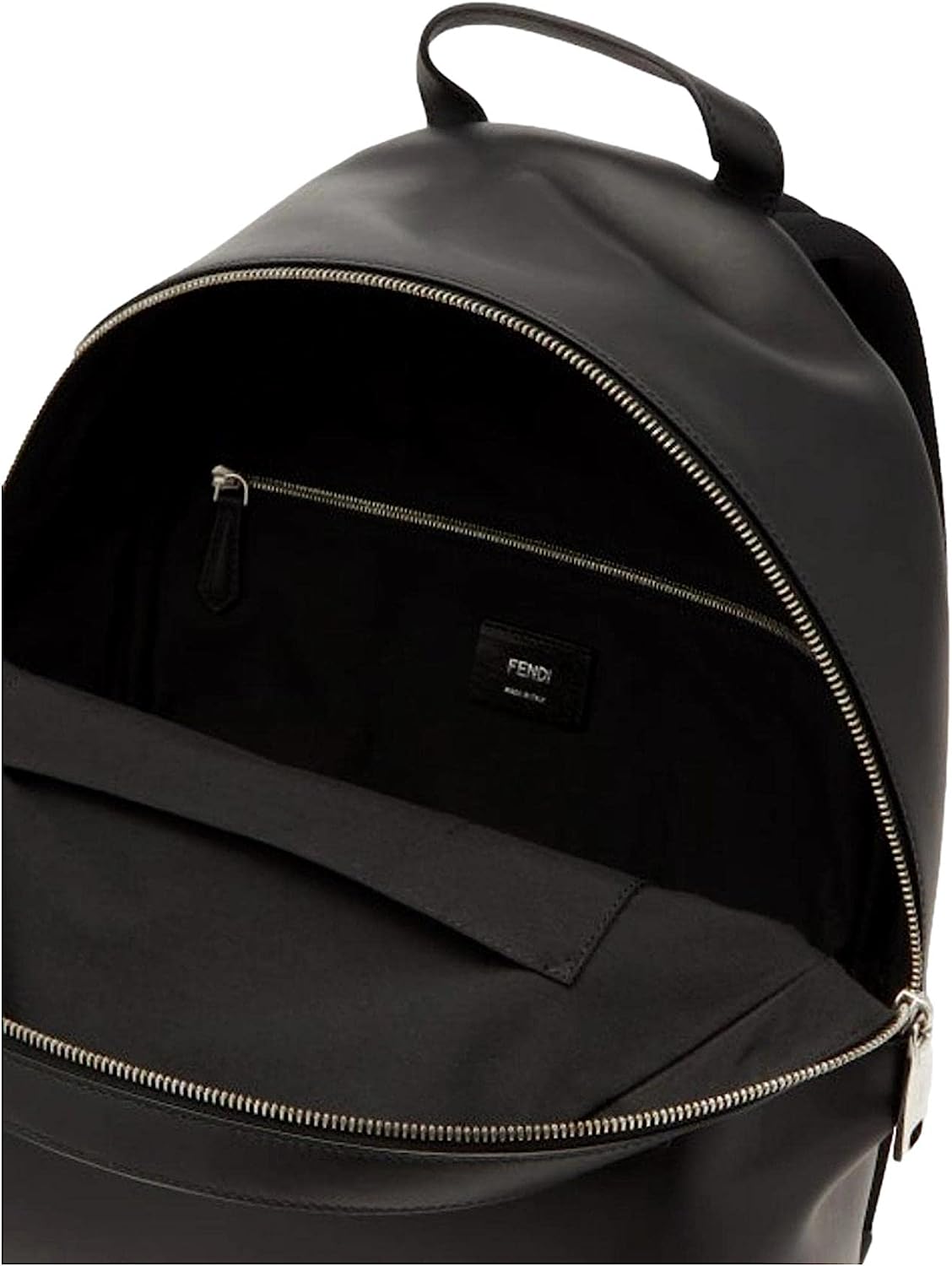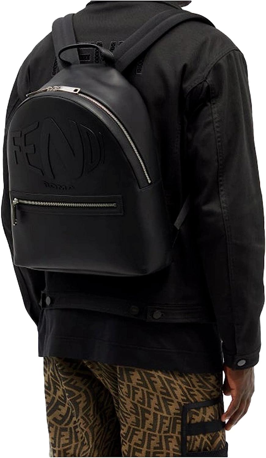 • Fendi’s black leather backpack features a warped logo reminiscent of the house’s distorted FF Vertigo motif. This Fendi structured backpack is crafted from smooth calfskin leather with silver hardware and reinforced with comfortable mesh padding at the back. Carry it by the top handle or the adjustable shoulder straps. Features a roomy main compartment, interior zipper pocket and exterior zipper pocket. Carry all of your essentials in style with this leather Fendi backpack!