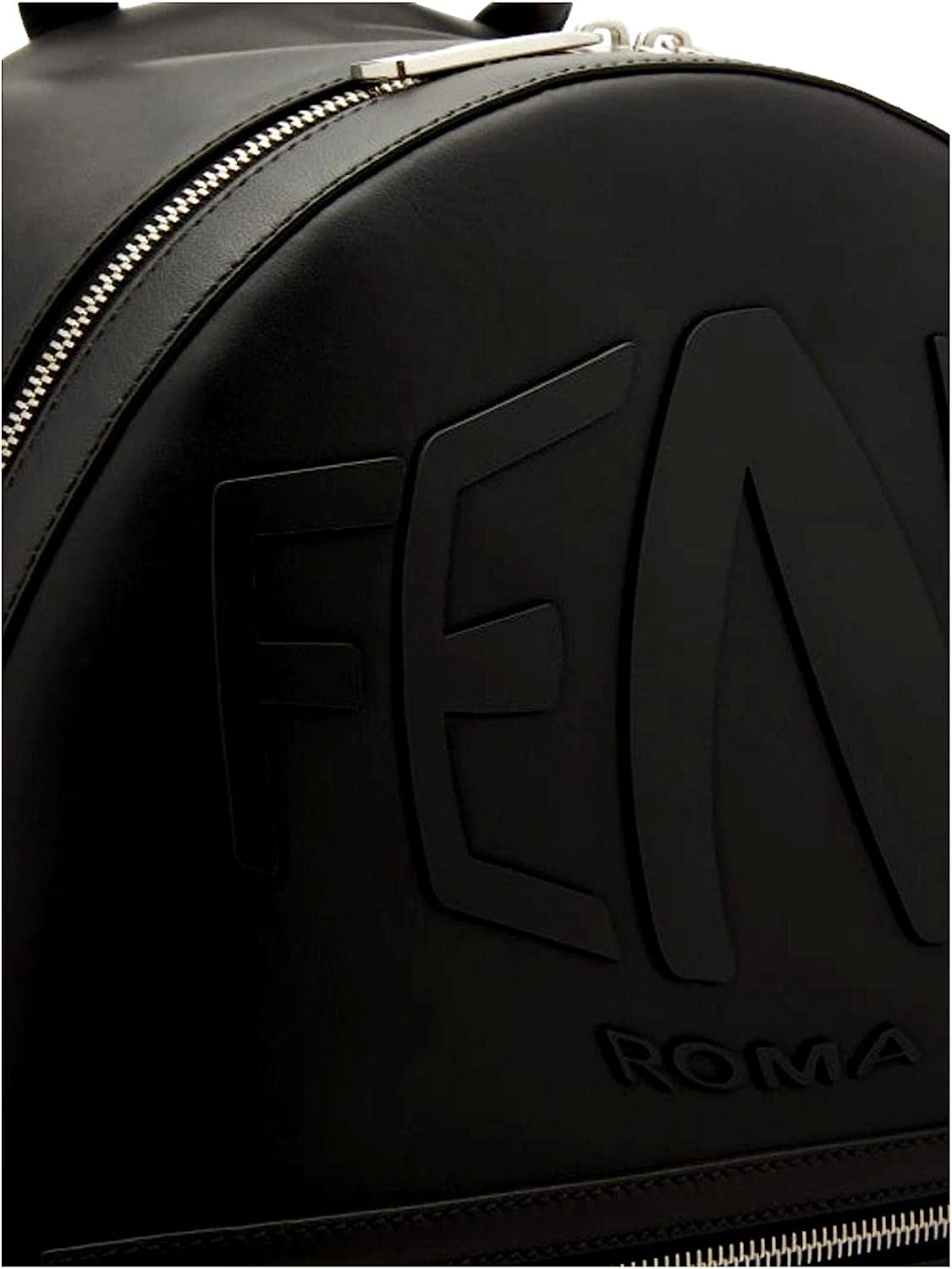 FENDI Roma Warped Logo Black Leather Backpack 7VZ042
